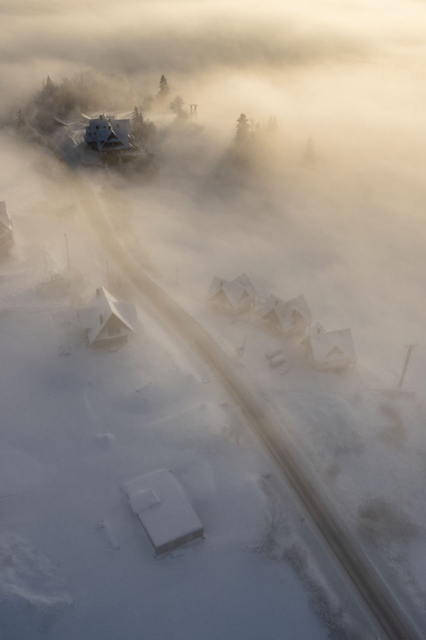 Nie jest to pierwszy raz, kiedy w czasie slowroadowych podróży zima zagrała mi na nosie. W 2021 r. w styczniu wybrałem się w Bieszczady. Cudem w ciągu całego tygodnia załapałem się na dwa dni ze śniegiem, co brzmi jak żart. Rok temu, chcąc znaleźć zimę, musiałem pojechać w najdziksze ostępy Gorców, żeby wysokość zrobiła swoje i żebym mógł zobaczyć śnieg. Podobnie było w 2019 r., kiedy zimę znalazłem dopiero 20 km za Suwałkami.