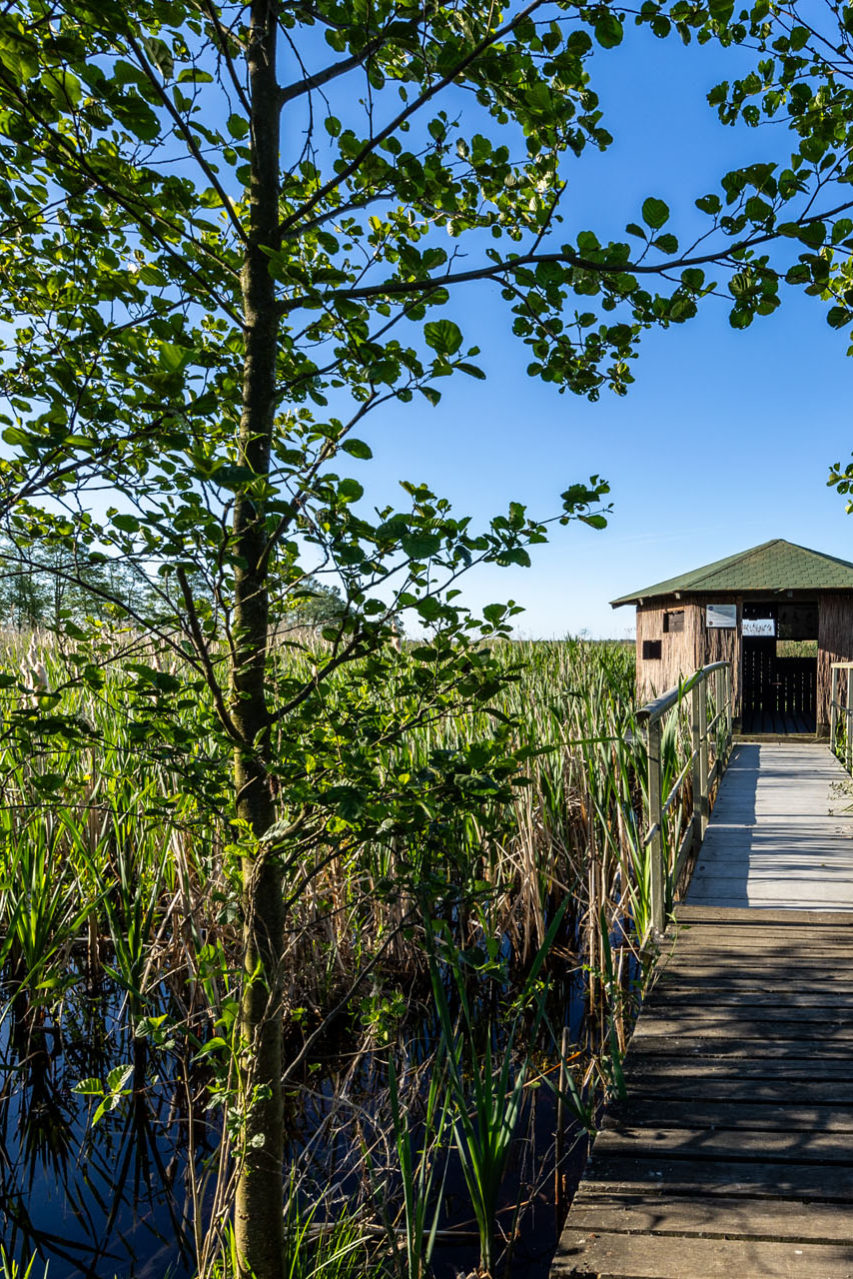Nie poddawałem się w poszukiwaniach ciekawych miejsc i przemierzyłem popularne szlaki po stronie Słońska. Znajduje się tam m.in. wieża widokowa na Czarnowskiej Górce czy ścieżka przyrodnicza „Mokradła” w pobliżu siedziby dyrekcji parku w Chyrzynie. Mostem w Kostrzynie nad Odrą przejechałem na drugą stronę Warty i pojechałem do Dąbroszyna. Tam skręciłem w dziurawą i wyboistą drogę prowadzącą do początku ścieżki spacerowej „Torfianka”. Później wróciłem na główną szosę i pojechałem do Kamienia Małego. Ponownie wjechałem na dziurawą drogę i zatrzymałem się przy moście na ścieżce przyrodniczej „Olszynki”. Niestety jej łąkowy fragment jest niedostępny ze względu na zły stan drewnianej kładki. Lasem warto przejść do czatowni znajdującej się na niewielkim zbiorniku wodnym, skąd można podziwiać ptaki bez ich zbędnego płoszenia.