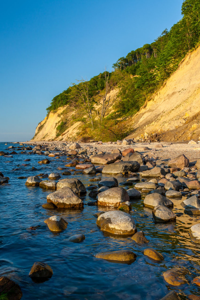 Woliński Park Narodowy odwiedziłem pod koniec maja. Był to dobry czas, bo pogoda sprzyjała, a turystów nie było jeszcze tak dużo. Nie polecam wybierać się w ten zakątek wybrzeża w okresie wakacyjnym. Lepszy jest czas przed sezonem lub po nim. Paradoksalnie jesień jest najlepszym wyborem, bo na zachód słońca i pokolorowane na pomarańczowo fale nie trzeba czekać aż do 21.00. Jesienią buczyna porastająca klif mieni się całą paletą czerwieni.