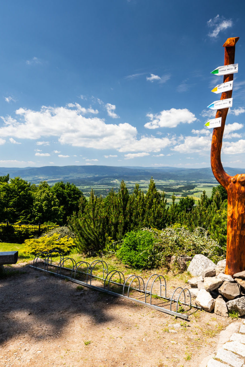 Idealne miejsce na niedługi spacer wśród natury. Samochód trzeba zostawić na parkingu przy drodze łączącej Duszniki-Zdrój z Zieleńcem. Następnie dość stromym szlakiem pieszym lub łagodniejszym (ale dłuższym) rowerowym dociera się do rezerwatu Torfowisko pod Zieleńcem. Znajduje się tam kilka przystanków z tablicami informacyjnymi. Niestety po wieży widokowej pozostały tylko nikłe ślady w ziemi. W idealnym stanie są za to drewniane kładki, dzięki którym można spojrzeć z bliska na rozległe torfowisko. Dookoła panuje błoga cisza, bo jest to miejsce oddalone od cywilizacji, odcięte od niej górami.