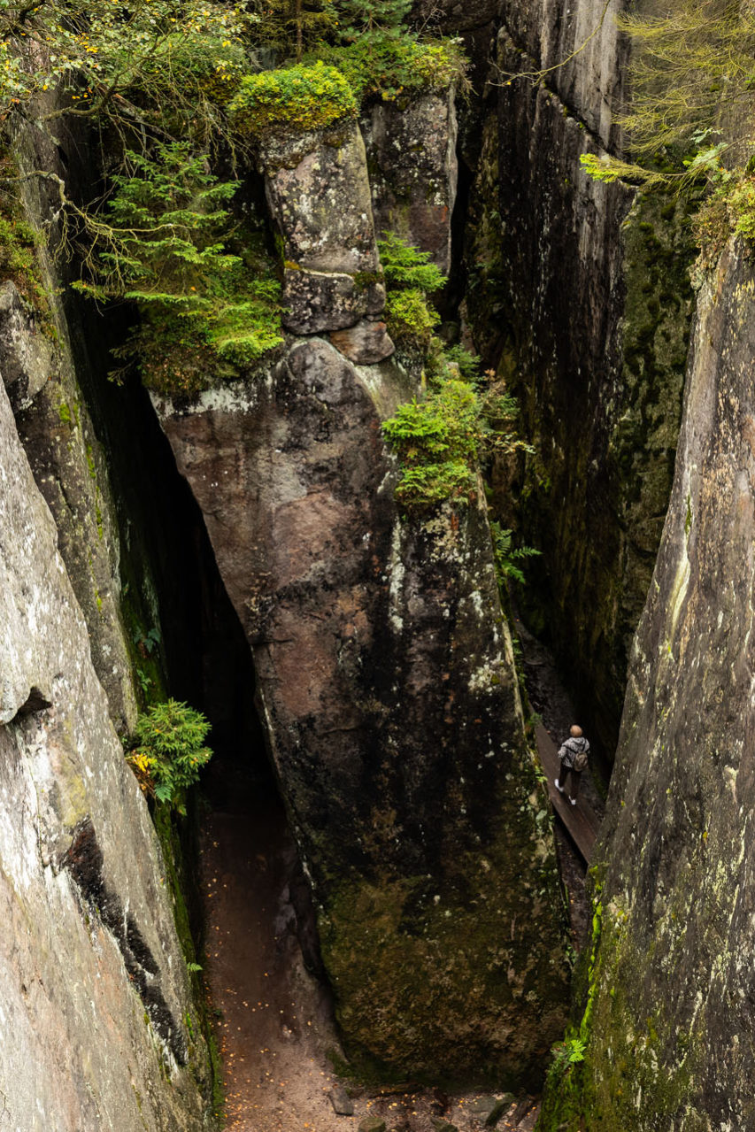 Najwyższy szczyt Gór Stołowych już od początku XIX w. przyciąga turystów. W dobie rodzącej się mody na podróżowanie i poznawanie nowych miejsc płaskie niczym stół tarasy Szczelińca Wielkiego okazały się idealnym celem górskich wycieczek kuracjuszy z pobliskich uzdrowisk. To dzięki tak dużej popularności na szczyt poprowadzono kamienne schody i wybudowano tam schronisko. Wejście z Karłowa spokojnym tempem zajmuje ok. 30 min. Widoki z góry wynagradzają wysiłek włożony w pokonanie ponad 600 schodów. Rozległe panoramy można podziwiać z tarasów przy schronisku, a także z tych, które są położone na trasie turystycznej biegnącej przez szczyt. Wśród skalnych szczelin kluczy się tam przez ok. 30 min. Do najbardziej klimatycznych miejsc zalicza się Piekiełko. Trasa w dłuższym wariancie, otwarta od wiosny do jesieni, kończy się przy południowych tarasach widokowych i następnie schodami idzie się z powrotem do Karłowa. W okresie zimowym dostępny jest skrócony wariant trasy. Koniecznie trzeba zabrać ze sobą raki, raczki lub nakładki antypoślizgowe.