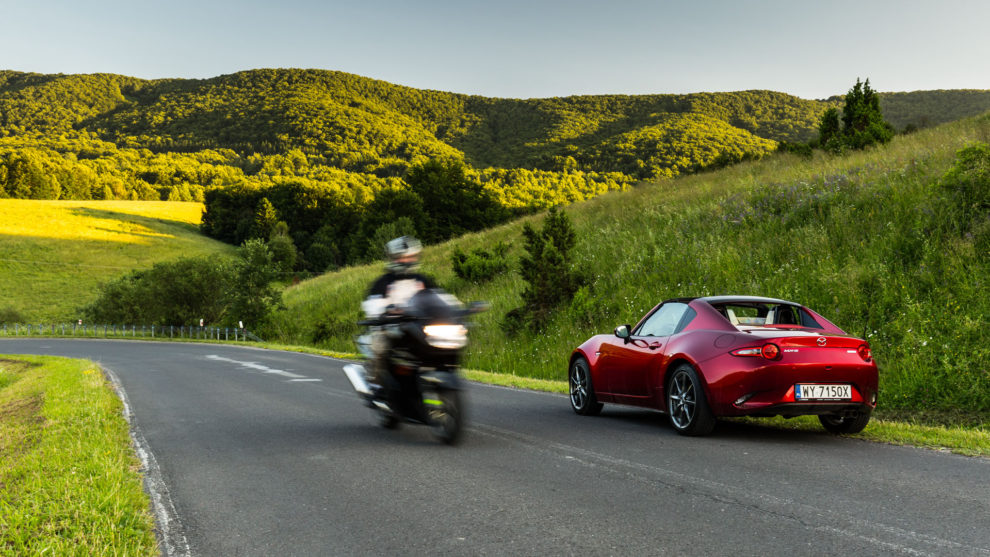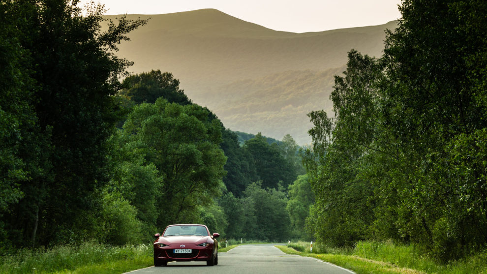 Lipcowe Bieszczady widziałem raz w życiu. W pamięci został mi obraz dżungli, która wyrosła w tej części Karpat. Buczyna tryskała świeżością. Niekoszone łąki wypełniały pachnące kwiaty i zioła. Świat skąpany był w odcieniach zieleni. To przepiękny widok, a kiedy doda się do niego czyste powietrze wypełnione wonią roślin, to powstaje mieszanka idealna. W tej kwestii przydatny okazał się składany dach w MX-5. Z dziką radością otwierałem go rano i zamykałem jedynie w czasie parkowania. Niemal 400 km po bieszczadzkiej puszczy pokonałem z otwartym dachem. To było niepowtarzalne przeżycie. Krajobraz w połączeniu z leśnymi aromatami sprawiły, że poczułem się jak w bajce.