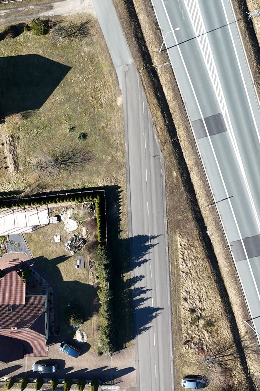 Tylko w jedynym miejscu udało mi się znaleźć porzucony fragment starej drogi. To ślepy odcinek, który przebiega obok domów w Wykrotach i kończy się przy płocie odgradzającym go od A4. Z drugiej strony droga kończy się rowem. Są na niej widoczne białe linie i koleiny. Obok styku z A4 wybudowano wiadukt. Kiedy spojrzałem na okolicę z lotu ptaka, bez problemu zobaczyłem przebieg starej drogi. Kolor asfaltu zdradza, którędy ona dawniej biegła.