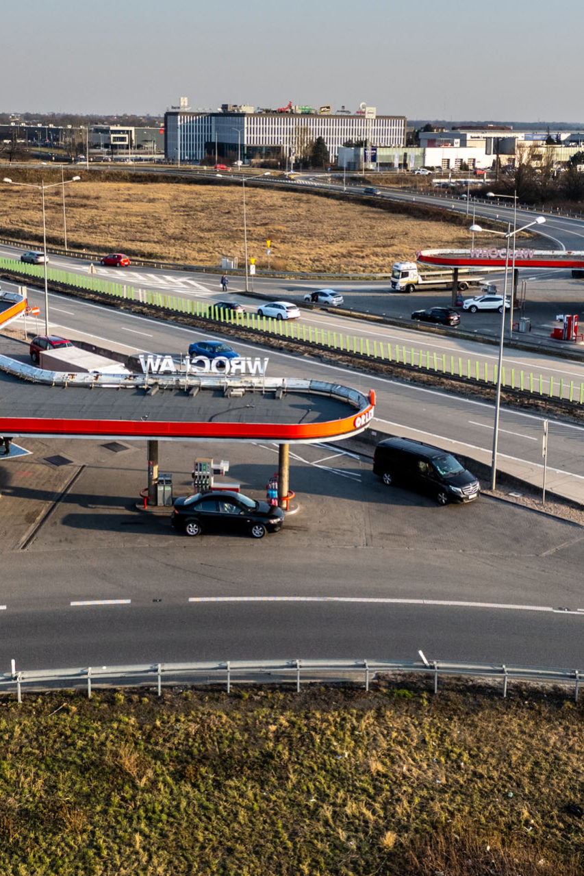 Początek marca. Słońce tyle co zdążyło się podnieść nad horyzontem. Stoję oparty o maskę Mazdy CX-60 na parkingu w Okmianach. Tuż obok znajduje się węzeł Krzywa, na którym dzisiaj przecinają się drogi nr 94 i A4. Dawniej w tym miejscu z A4 zjeżdżało się na drogę nr 4 w kierunku Zgorzelca. Jestem blisko autostrady, więc na parkingu panuje spory ruch. Szum przejeżdżających samochodów po chwili staje się naturalnym tłem. Obok węzła wybudowany został magazyn firmy Amazon, więc ruch tirów w tym miejscu jest ogromny. Z kawą w dłoni, oparty o samochód, obserwuję okolicę. Stacja BP ma kilkanaście stanowisk do tankowania. Parkingi ciągną się po horyzont. Na niektórych płotach czy ścianach budynków widać jeszcze napisy po niemiecku, które zachęcają do kupna papierosów, gipsowych krasnali, wymiany waluty czy wynajęcia „privat Zimmer”.