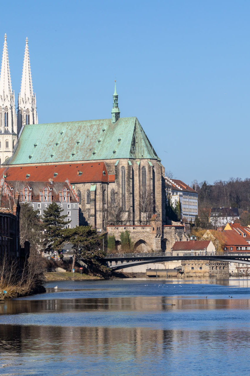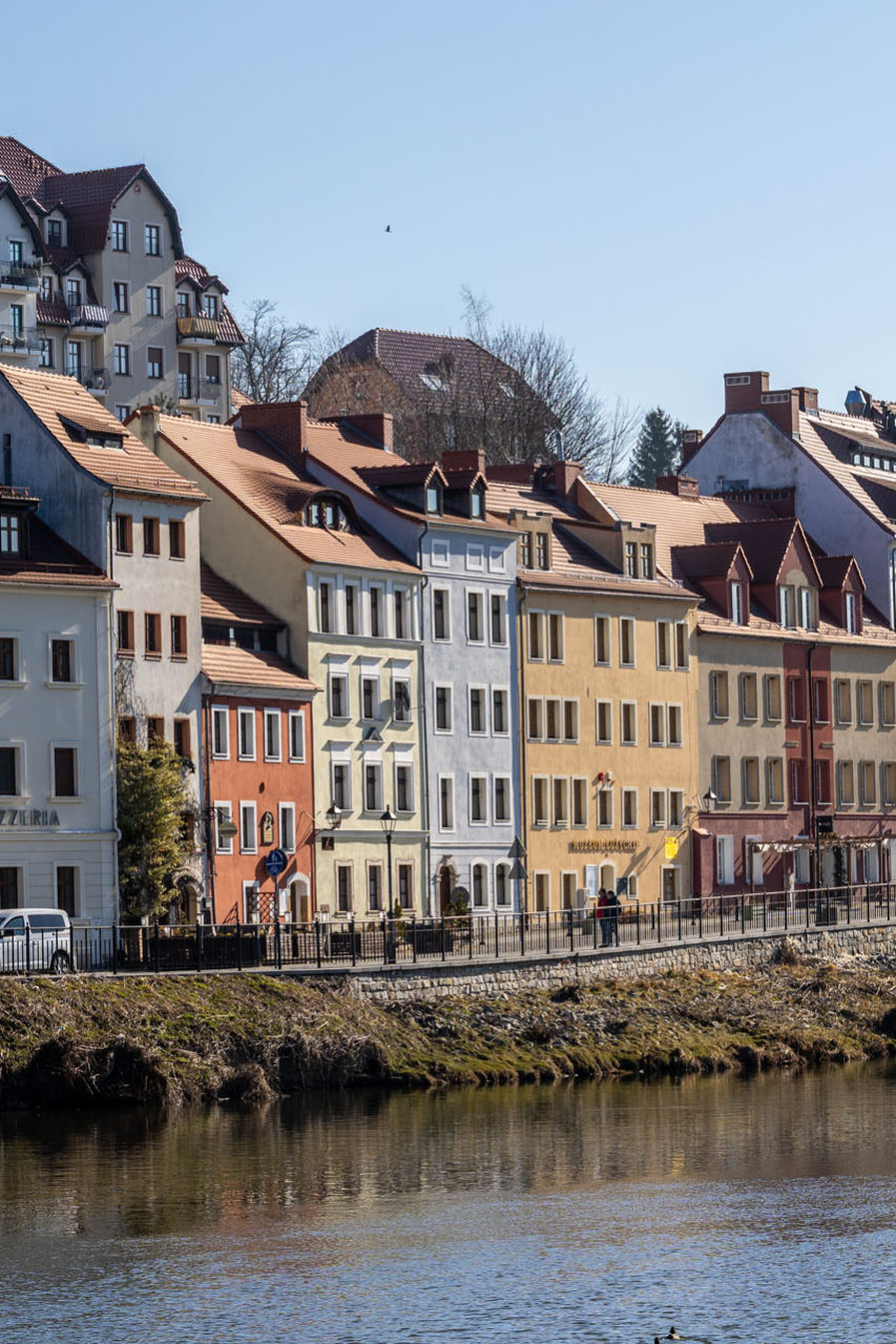 Drugie miasto to Zgorzelec. Sytuacja wygląda w tak, że to, co najciekawsze – ratusz, rynek, staromiejska zabudowa – znajduje się po niemieckiej stronie granicy, czyli w Görlitz. Planując przejście czy przejazd samochodem przez granicę, trzeba pamiętać o zabraniu odpowiednio: dowodu osobistego oraz prawa jazdy, dowodu rejestracyjnego i potwierdzenia ubezpieczenia auta. Moim zdaniem na niemiecką stronę najlepiej przejść pieszo Mostem Staromiejskim, bo w obrębie Starego Miasta i tak jest sporo ulic wyłączonych z ruchu.