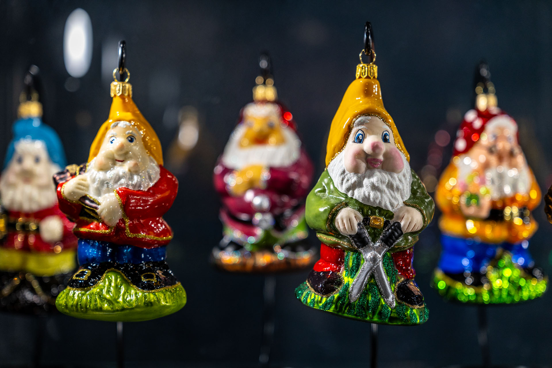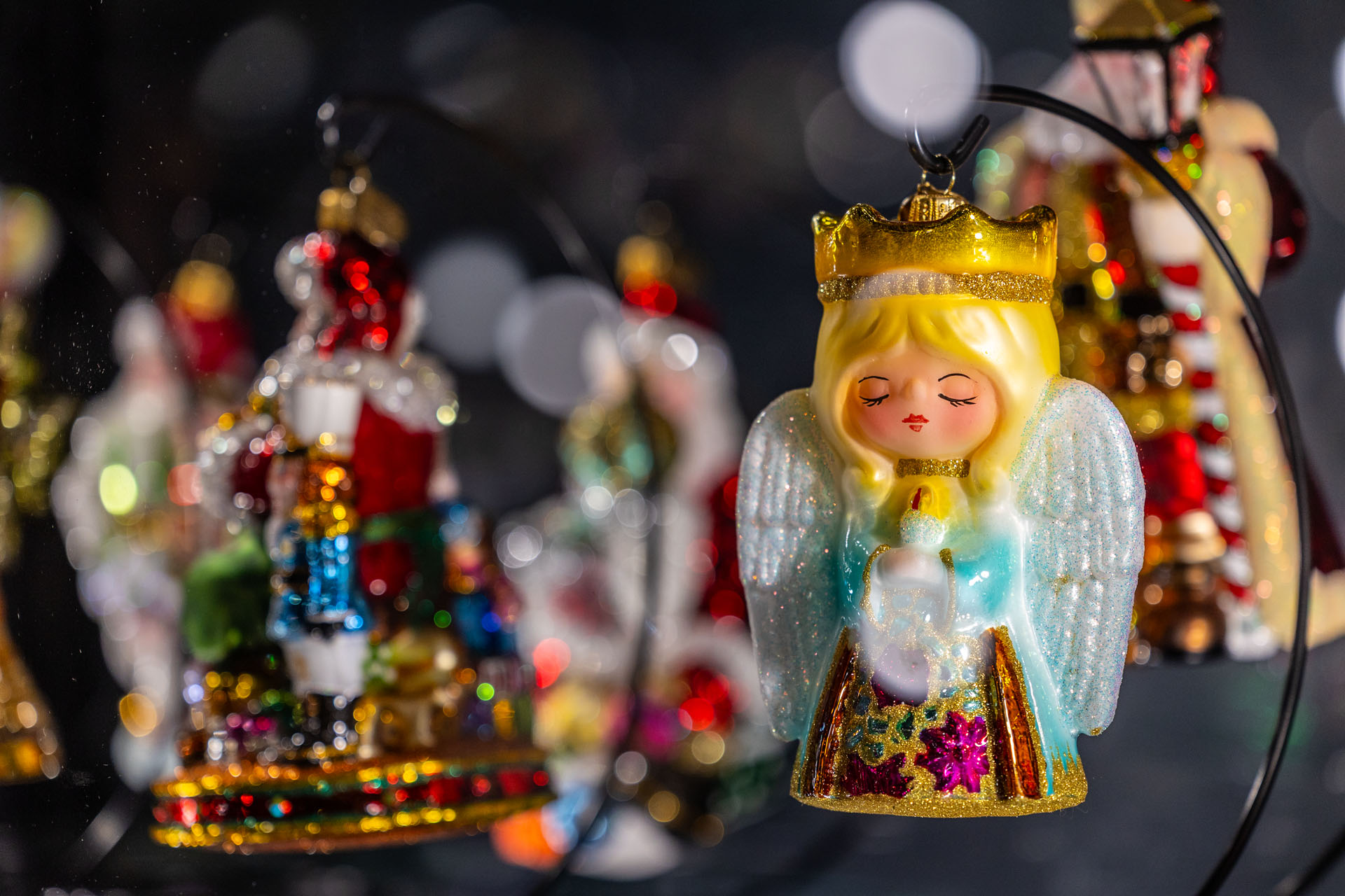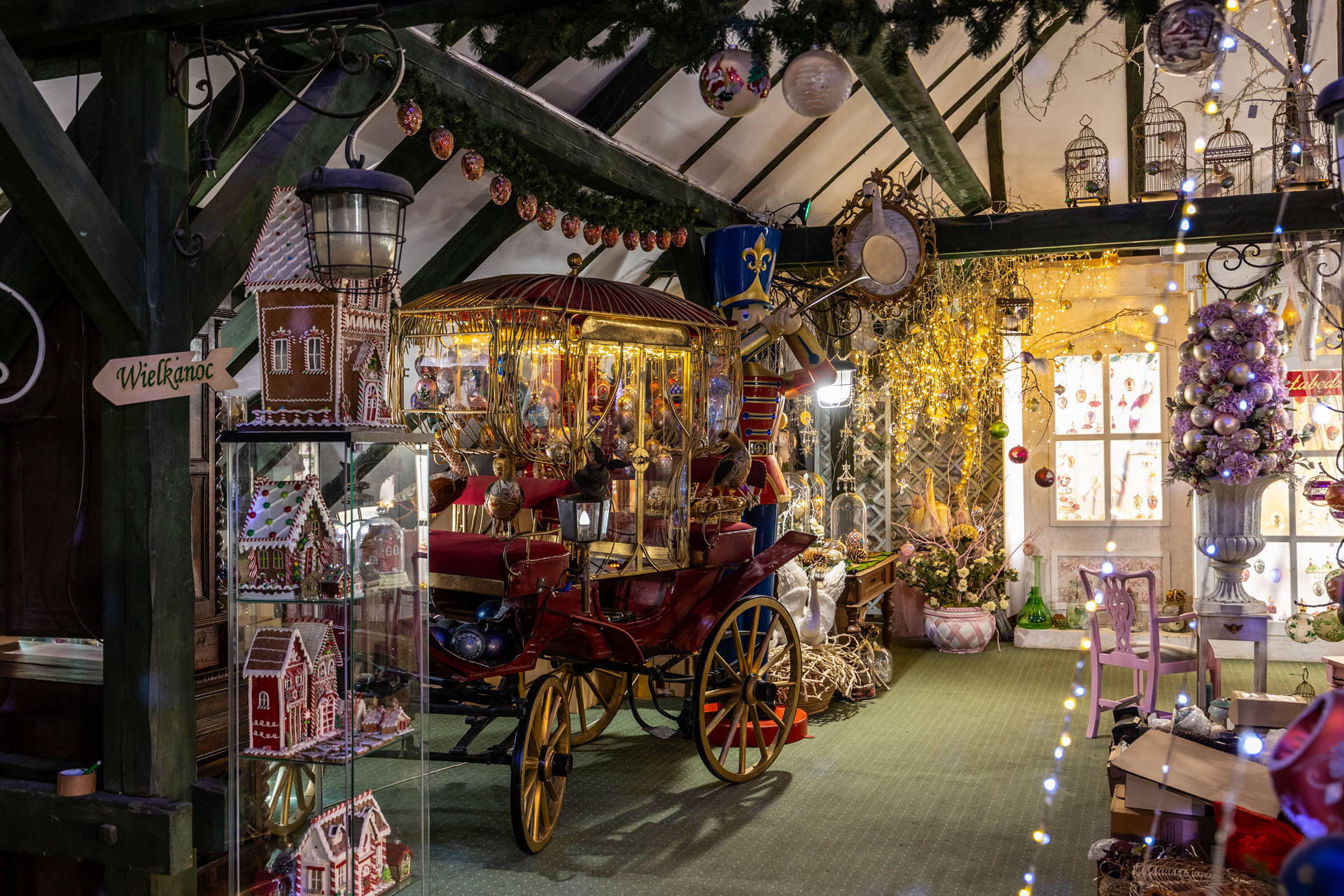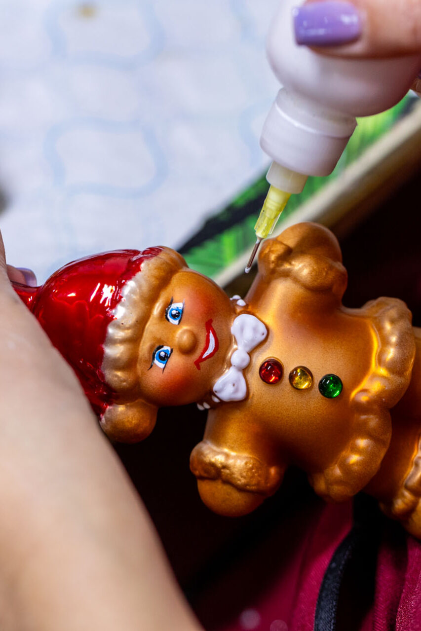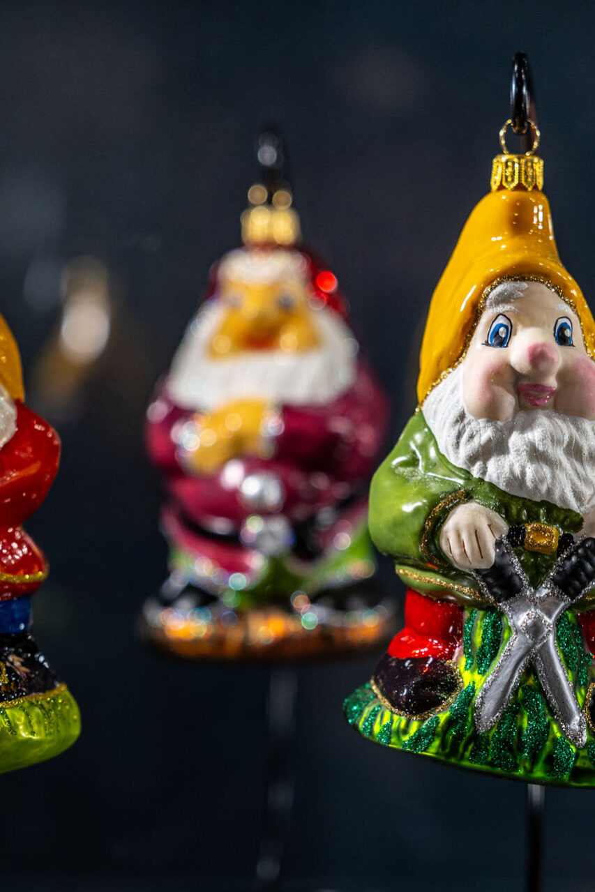 Ze sklepu, w którym mieści się kasa, poszedłem piętro wyżej. No i przepadłem! Trudno będzie mi słowami opisać klimat tej przestrzeni, bo nigdy wcześniej czegoś takiego nie widziałem. Z jednej strony są tam gabloty z przepięknymi bombkami, ale są tam również liczne stanowiska, przy których własnoręcznie pracuje się nad ozdobami choinkowymi.
