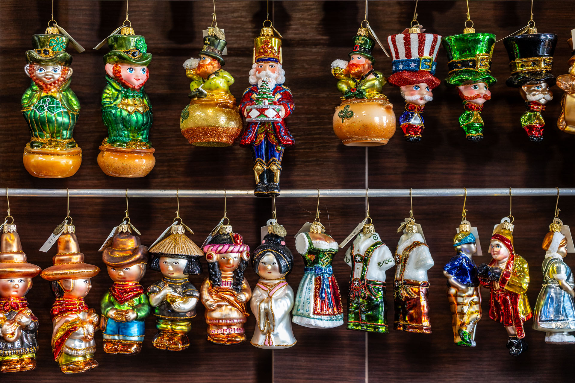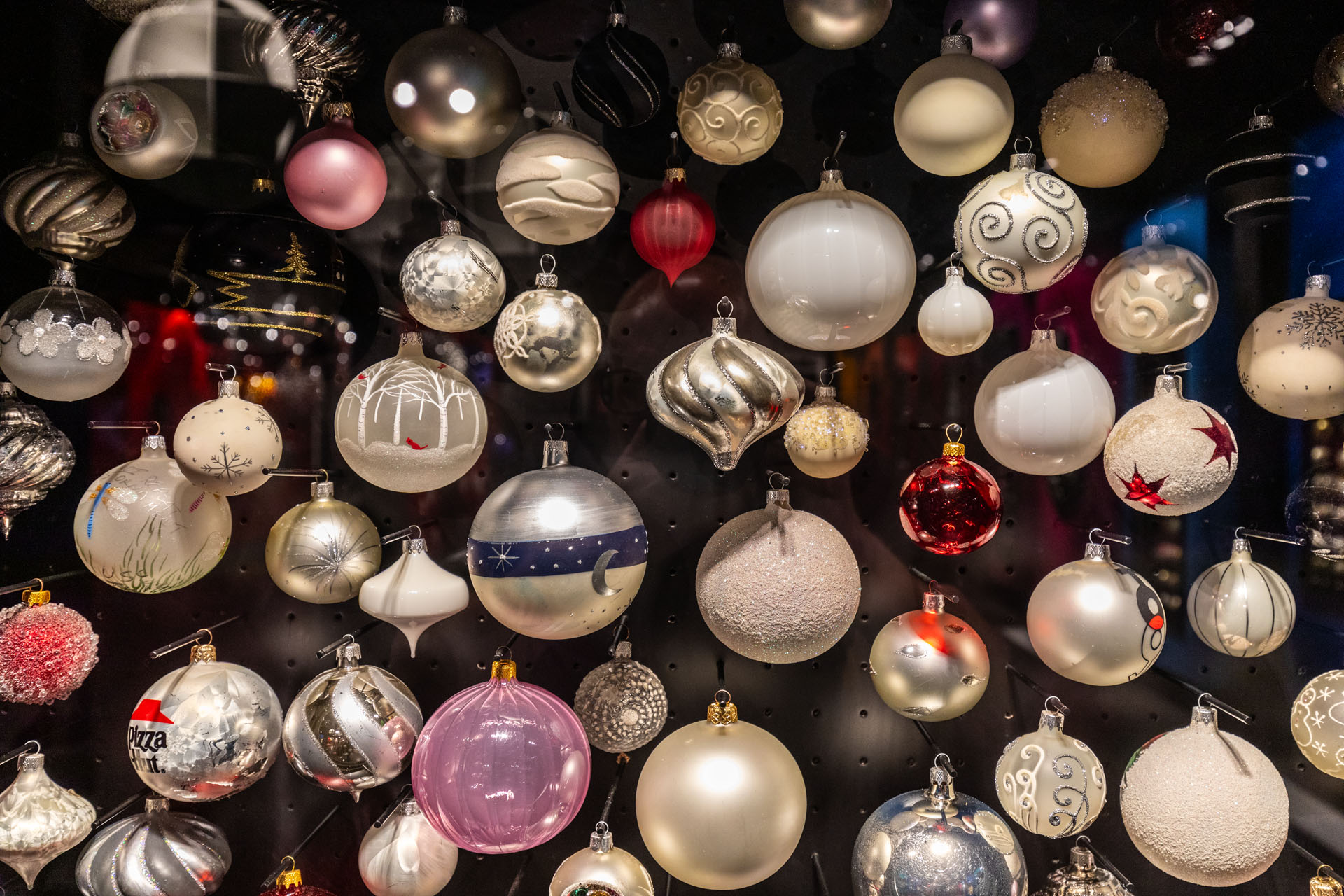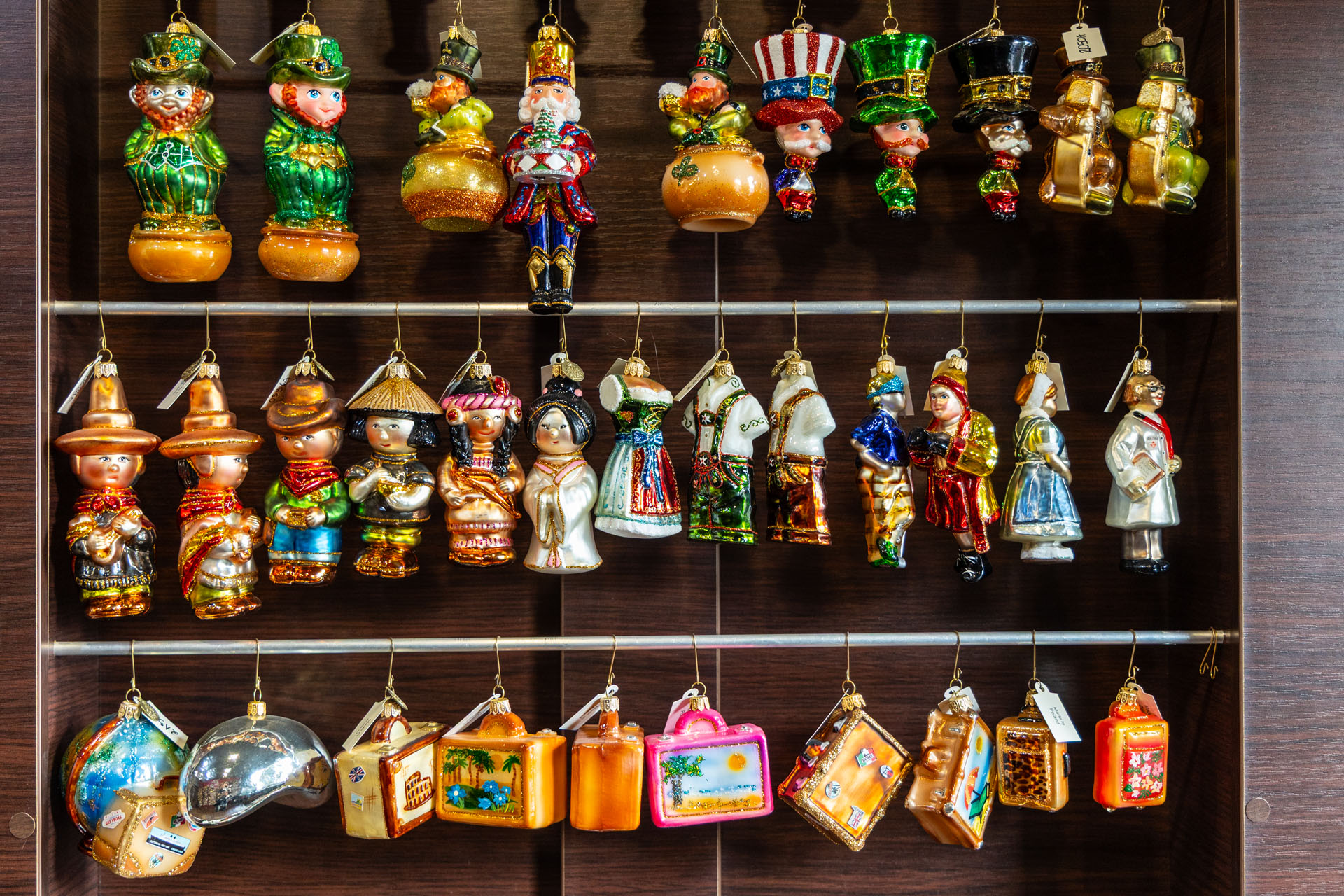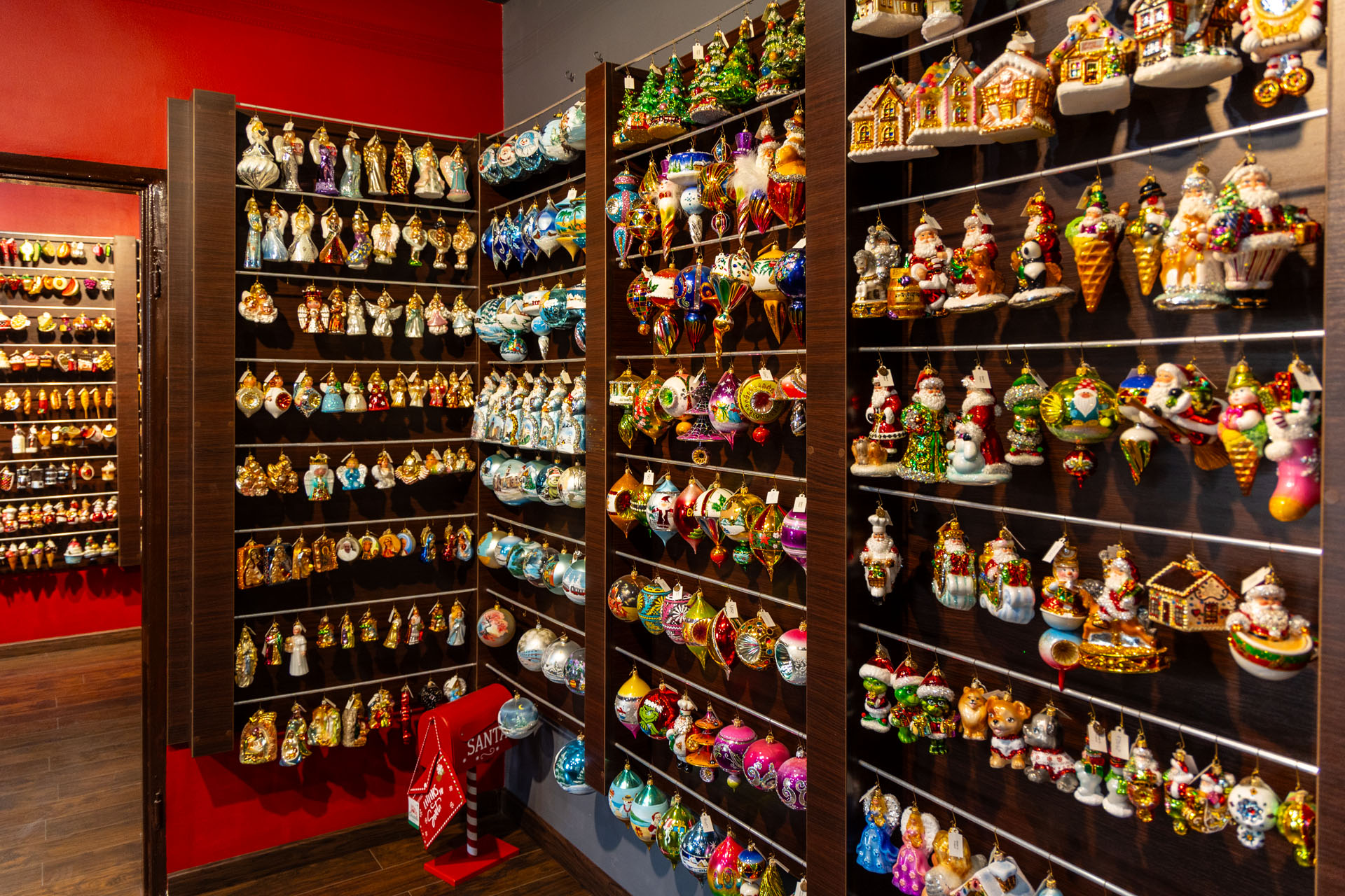 Ze sklepu, w którym mieści się kasa, poszedłem piętro wyżej. No i przepadłem! Trudno będzie mi słowami opisać klimat tej przestrzeni, bo nigdy wcześniej czegoś takiego nie widziałem. Z jednej strony są tam gabloty z przepięknymi bombkami, ale są tam również liczne stanowiska, przy których własnoręcznie pracuje się nad ozdobami choinkowymi.