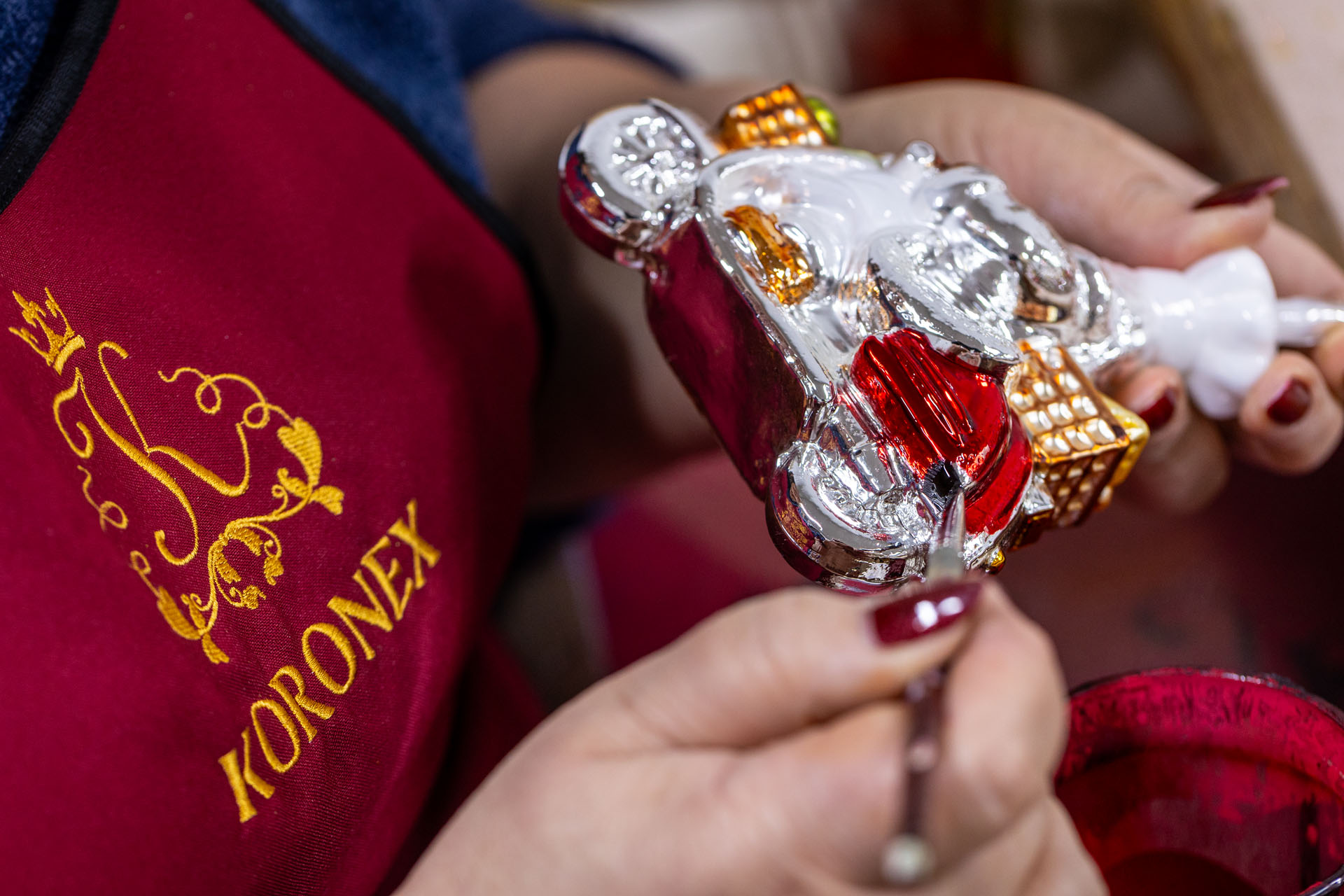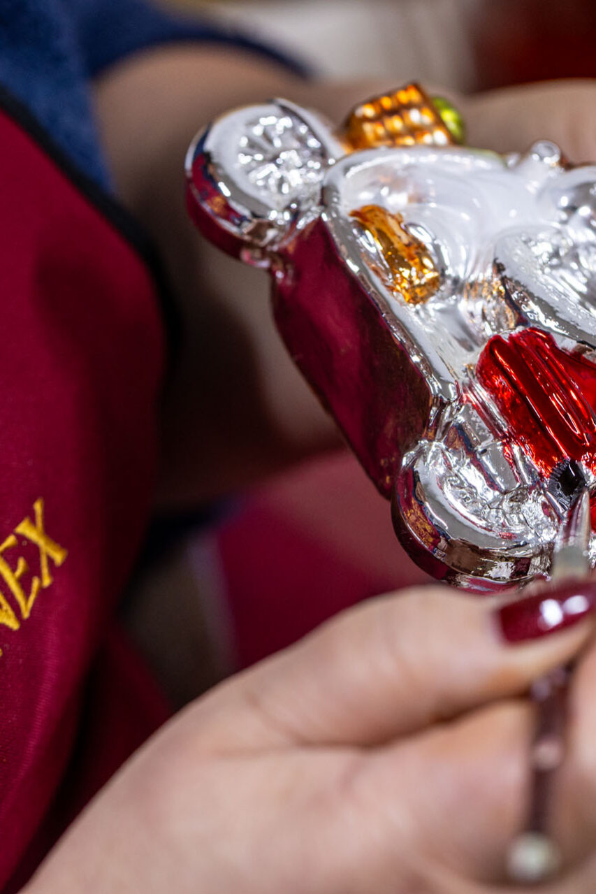 Koronex tworzy Rękodzieło przez duże R. Nie ma tu dróg na skróty, nie ma mowy o „przyspieszaniu” produkcji – Rękodzieło wymaga rąk i czasu. Jeden błąd, jeden zły ruch i szkło pęka. Nie traci się tylko „szkła”, ale przede wszystkim traci się czas poświęcony na pracę. Im bardziej skomplikowana bombka, tym więcej czasu i pracy rąk potrzebne jest do osiągnięcia efektu końcowego. Później trzeba bombkę odpowiednio zapakować, bo kiedy kończy przygodę na produkcji, rozpoczyna podróż… często na drugi koniec świata: USA, Japonia, Niemcy, Australia… A zaczyna się wszystko od szklanej rurki i mocnego oddechu dmuchacza w Częstochowie.
