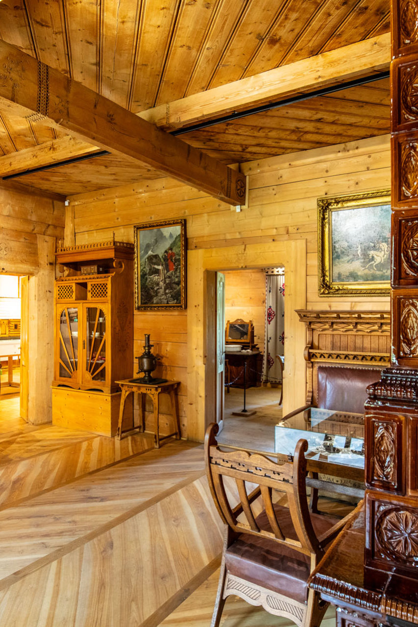 Z Brzezin, a dokładniej z parkingu przy wylocie Doliny Suchej Wody, pojechałem na rowerze do centrum miasta. Krupówki pękały w szwach. Było już południe, więc zapachy belgijskich frytek, waty cukrowej i grillowanych serków góralskich udających oscypki zdążyły się już wymieszać. Gwar i ścisk. Chwilę pokluczyłem bocznymi uliczkami i nagle poczułem, że jestem w innym świecie. Dookoła było pusto. Przed oczami miałem Gmach Główny Muzeum Tatrzańskiego. Przekroczyłem próg i… wpadłem w zachwyt.