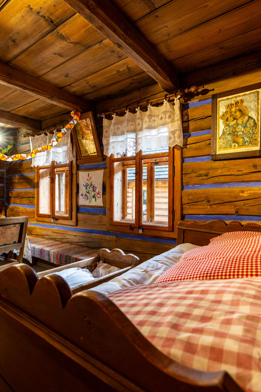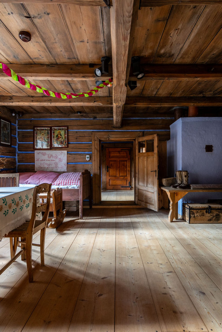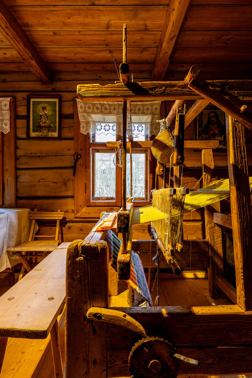 Nie zliczę, ile razy pokonywałem stromy podjazd na Litwinkę (nazywana również Czarną Górą). Kiedy zobaczyłem, że jedna z filii Muzeum Tatrzańskiego w Zakopanem znajduje się u jej podnóża, to nie mogłem odmówić sobie przyjemności pojechania w to urokliwe miejsce. Tym razem nie tylko dla górskich panoram, ale również dla Zagrody Korkoszów. W tej malowniczej spiskiej wsi zachował się oryginalny układ przestrzenny dawnej zagrody, która funkcjonowała od końca XIX wieku do lat 30. XX wieku. Początkowo składała się z chałupy i stajni, a następnie została powiększona o kolejne budynki gospodarcze (kamienna stajnia i wozownia). Wystawy prezentują dawny wygląd pomieszczeń – sieni, kuchni, wielkiej izby, letniej izby czy pańskiej izby. W jednym z budynków gospodarczych zaprezentowano, jak wyglądała obróbka lnu.