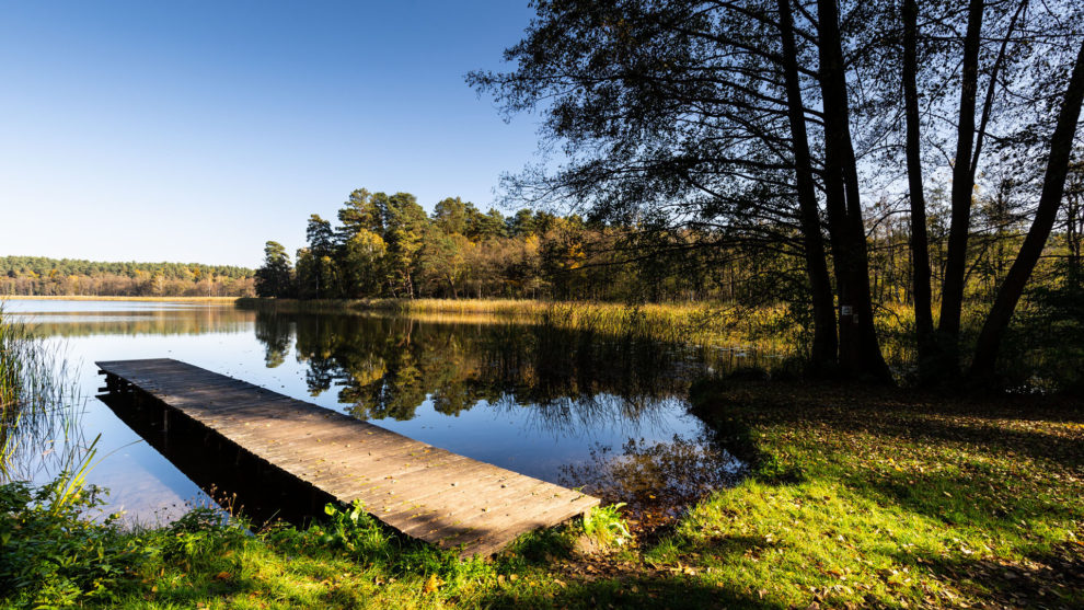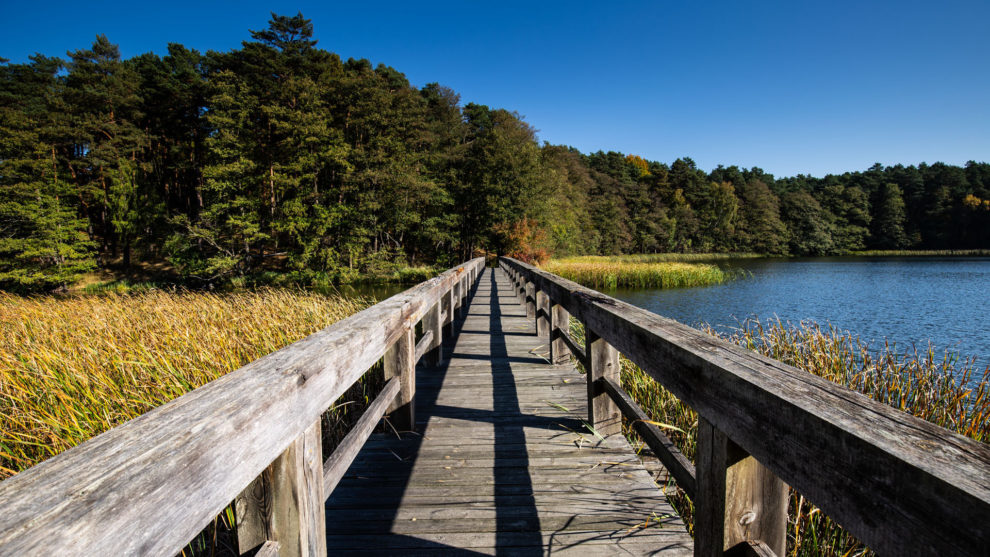 Cała ścieżka wymaga przejścia 7 km, ale można skrócić ją do 5 km. Ja wybrałem dłuższy wariant, by w pełni nacieszyć się piękną pogodą i jesienną aurą. To był wspaniały październikowy dzień. Zaparkowałem w wyznaczonym miejscu nieopodal jeziora i rozpocząłem wędrówkę. Ścieżka jest bardzo dobrze widoczna i wyraźnie oznakowana. Najciekawsze elementy zostały opisane na tablicach przy poszczególnych przystankach, co pozwala lepiej zrozumieć wyjątkowość tego obszaru. Droga prowadzi wzdłuż brzegu jeziora, potem przez drewnianą kładkę, w końcu przebiega przez las i osadę Ostrowite, by ostatecznie wrócić do parkingu. Po drodze mija się niezwykle ciekawe Jezioro Czarne. Powstało około 10 tys. lat temu, utworzyła je ogromna bryła martwego lodu odczepiona od lodowca, która wytopiła się w tym miejscu tworząc bardzo głębokie bezodpływowe jezioro o wyjątkowo przejrzystej wodzie. Ze względu na ukształtowanie terenu wokół jest ono natlenione tylko do głębokości 13 metrów, wiatr nie jest w stanie dotrzeć głębiej. Nie ma również dopływów. Najprościej mówiąc, w dolnej pozbawionej tlenu warstwie żyją, tylko beztlenowe bakterie. W dodatku woda jest przeźroczysta do głębokości mniej więcej 7 metrów. To unikatowe miejsce, trzeba koniecznie je zobaczyć, nawet jeśli nie planujecie przejścia całej ścieżki dydaktycznej. Dojście do jeziora z parkingu nie zajmie więcej niż 15 minut.