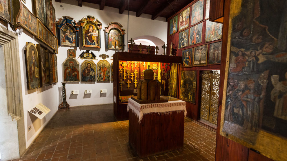 Ze skansenu udałem się do centrum. Zaparkowałem tuż obok zamku i spacerem dotarłem na przestronny rynek. Znajduje się na nim przepiękny neogotycki ratusz. Na obiad zajrzałem do karczmy Karpackie Jadło (do wyboru jest jeszcze restauracja Stary Kredens). Kolejnym punktem na mojej liście był sanocki zamek. Interesowała mnie głównie wystawa prac Zdzisława Beksińskiego, dlatego miłym zaskoczeniem były dla mnie pozostałe ekspozycje. Muzeum posiada jeden z największych zbiorów ikon w Polsce i Europie liczący prawie 700 eksponatów.