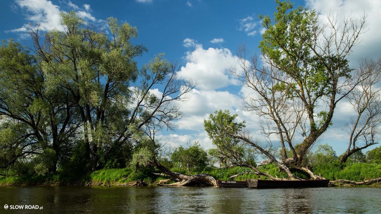 Wystartowałem przy przeprawie promowej w Kamieńczyku i udałem się… w górę rzeki, płynąc pod prąd, aż do ujścia rzeki Liwiec. Nurt był miejscami wartki, ale stabilny i komfortowy kajak dał się bezbłędnie prowadzić. W wielu miejscach można zacumować przy brzegu i podziwiać przewieszone nad taflą wody stare wierzby czy topole. Na rzece całkowity spokój. Gdzieś w oddali dostrzegłem samotnego wędkarza i tylko ptaki towarzyszyły mi w mojej wodnej przygodzie.