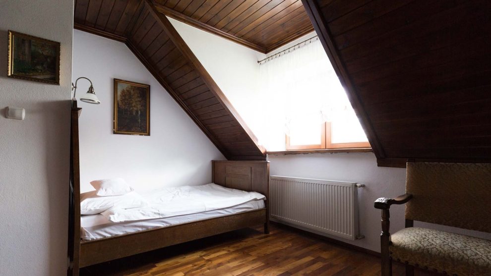 Dwór Hipolitów miał być spełnieniem marzeń o własnym miejscu na ziemi. Doświadczenia z wieloletnich podróży po świecie pozwoliły dostosować go do potrzeb gości. We wnętrzach odnajdziecie sporo akcentów nawiązujących do tradycji polskiej szlachty. Nazwy pokoi pochodzą od herbów szlacheckich, a na drzwiach wiszą ich wizerunki. Są urządzone przytulnie i z konsekwencją, nie brakuje w nich przestrzeni. Na dole przygotowano część wypoczynkową, sporych rozmiarów jadalnię i słoneczny taras, z którego roztacza się widok na wspaniały las. Na działce znajdują się dwa malowniczo położone stawy. Spotkacie też stado owiec, które pasą się na sporym terenie obiektu. Pan Andrzej przewidział nawet miejsce na grilla i ognisko z piecem chlebowym, wędzarnią i fajerkami do gotowania.