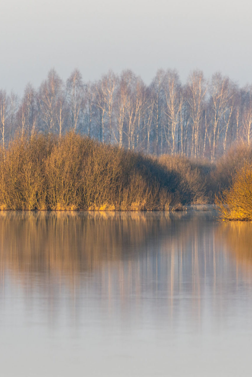 Ścieżką do Białego Grądu najlepiej wybrać się na spacer o świcie. Wstające za rzeką słońce tworzy niezwykły spektakl odbić, mgieł, a tłem do niego są odgłosy budzącej się natury.