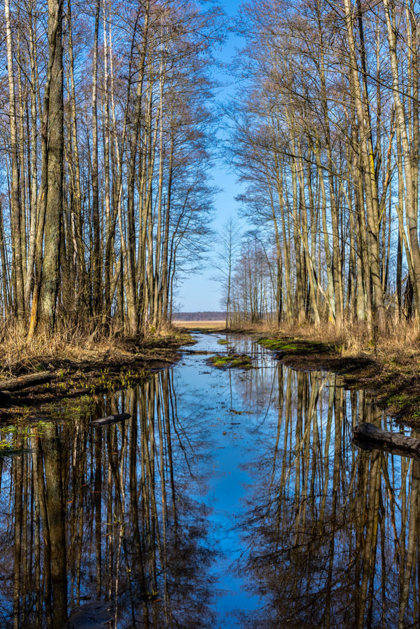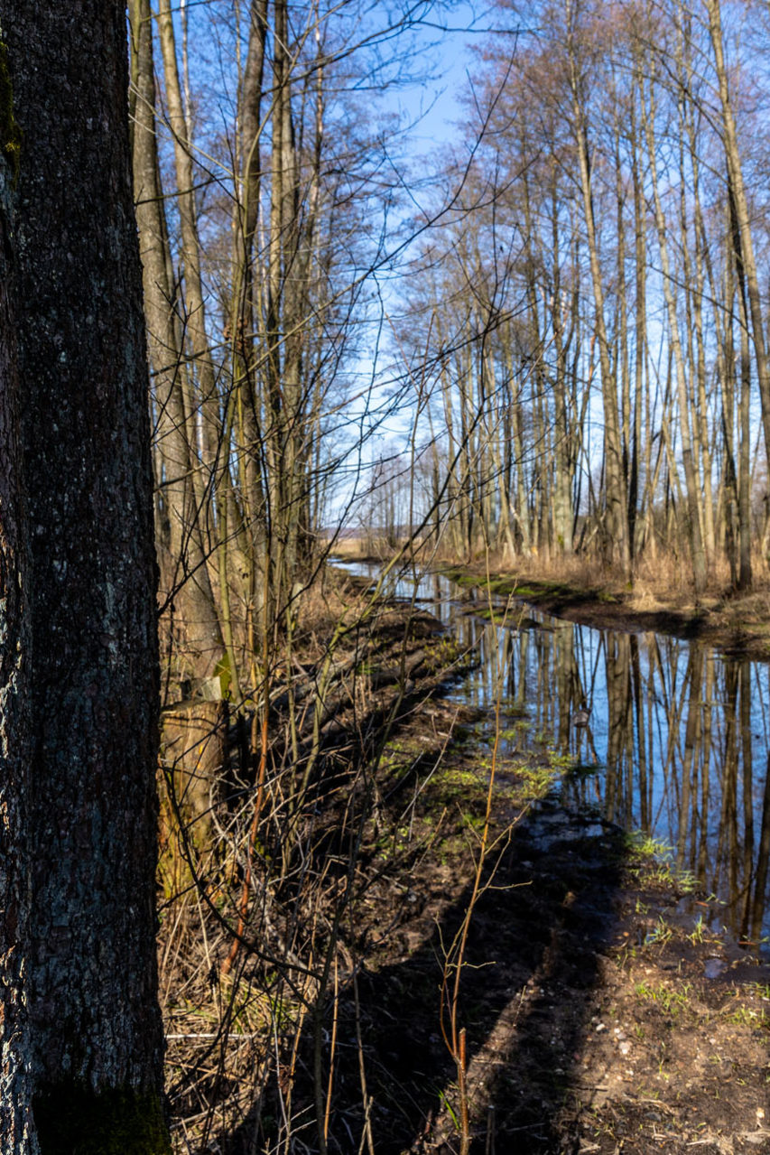Kiedy wybrać się na przygodę na Carskiej Drodze? Uważam, że najlepszym czasem jest marzec. Po pierwsze, nie ma jeszcze liści, więc widać dużo więcej niż latem. Po drugie, w olsach stoi dużo wody, co dodaje pejzażom niezwykłego uroku. Po trzecie (i chyba najważniejsze), o tej porze roku nie ma komarów, gzów i innych latających stworzeń, które w środku lata potrafią skutecznie odebrać przyjemność z wędrówki.