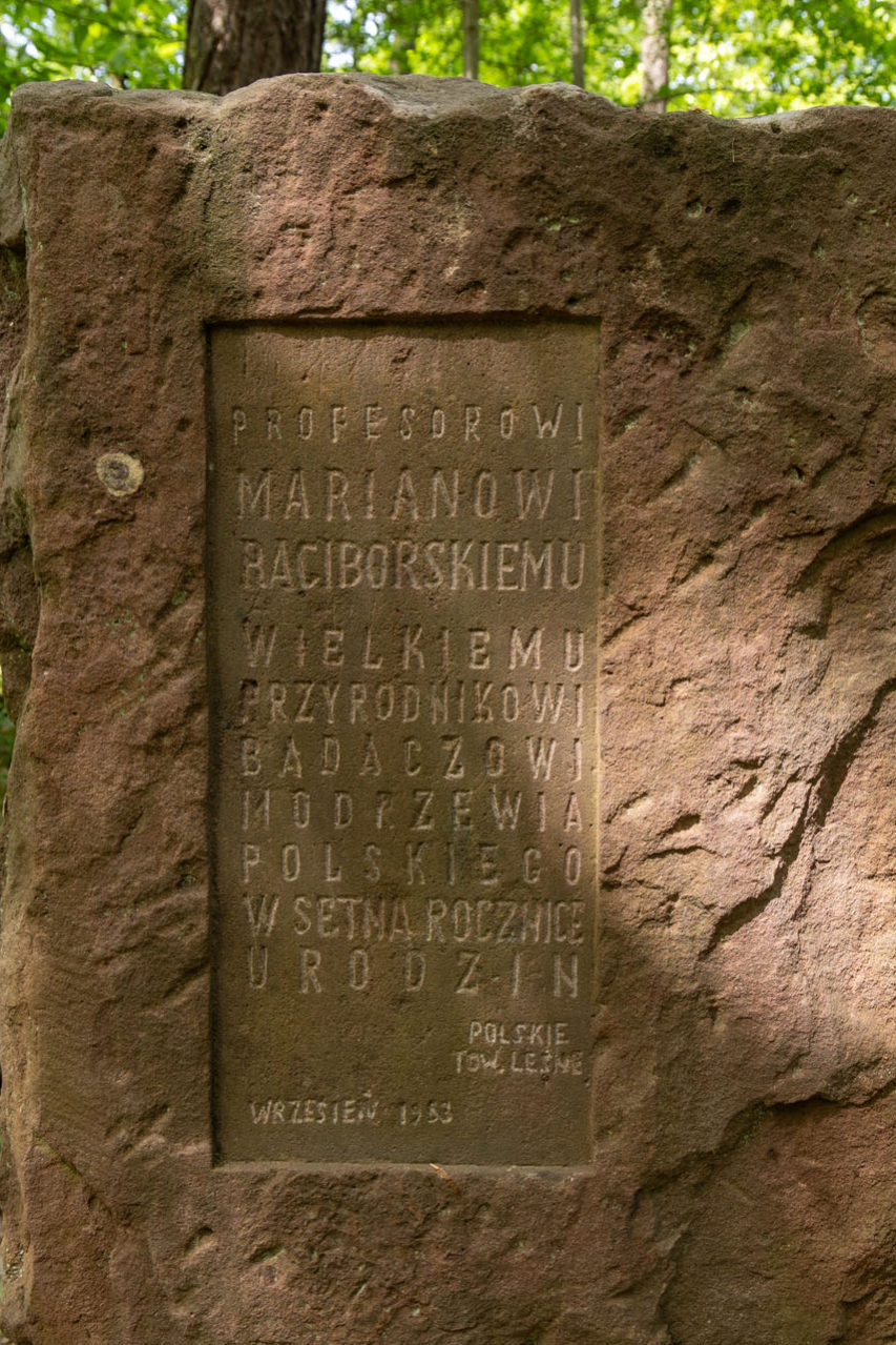 Po przejściu przez bramę od razu poczułem, że to wyjątkowe miejsce. Wśród pni wiekowych drzew wyróżniały się potężne modrzewie. W 1920 roku utworzono na tych terenach rezerwat, który stał się fundamentem dzisiejszego Świętokrzyskiego Parku Narodowego. Na szczycie góry ustawiony jest pomnik poświęcony botanikowi Marianowi Raciborskiemu, który wyodrębnił gatunek modrzewia polskiego. To jego staraniom zawdzięczamy fakt, że te wyjątkowe drzewa przetrwały do naszych czasów. Niektóre okazy osiągają ok. 40 m, a wiek najstarszych modrzewi datuje się na ok. 300 lat.