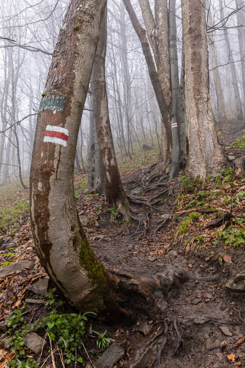 Skręcając w lewo i podążając za czerwonymi znakami, początkowo pokonuje się niewielkie pagórki. Szlak jest bardzo przyjemny i dopiero po ok. 30 minutach Lackowa pokazuje swoje prawdziwe oblicze. Niech nie będzie złudne pierwsze strome podejście na szlaku. To dopiero preludium przed właściwą „ścianą płaczu”, która wyrasta dopiero za tym podejściem. Trzeba przyznać, że szlak jest w tym miejscu bardzo wymagający. Stromizna połączona z błotem, kamieniami i korzeniami nie ułatwia podejścia. Jest to bardzo zaskakujące miejsce, bo nic po drodze nie wskazuje, że trzeba się będzie zmierzyć z tak wymagającą ścianą. Jej potoczna nazwa zdaje się uzasadniona, bo nawet kiedy jest sucho, to podejście daje nieźle w kość. W upalne dni trzeba mieć ze sobą spory zapas wody, bo „ściana płaczu” wyciska ostatnie poty. Kiedy już wejdzie się na grzbiet, szlak staje się bardzo przyjemny. Biegnie skrajem urwiska i po ok. 10 minutach od końca stromego podejścia dochodzi się do zalesionego szczytu. Widoków brak, więc pozostaje chwila na odpoczynek i można ruszać w drogę powrotną. W błędzie jest ten, kto myśli, że „ściana płaczu” przy zejściu to drobnostka. Właśnie zejście z niej, jak to zwykle bywa w górach, jest bardziej niebezpieczne i wymagające.