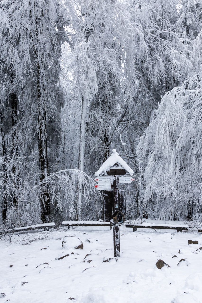 Przy drogowskazie w skrzynce umieszczona jest pieczątka Korony Gór Polski.