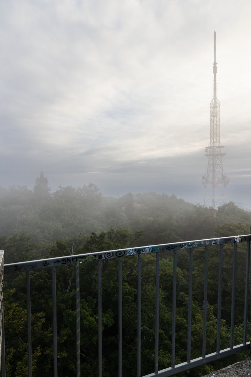Wierzchołek pojawia się nagle, wyłaniając z gęstego lasu. Na szczycie warto zaplanować dłuższy przystanek. Są tam dwie wieże widokowe. Do bezpłatnej dochodzi się niebieskim szlakiem, obchodząc z tyłu budynek kościoła. Wejście na górę prowadzi po metalowych drabinkach. Wskazane jest zostawienie plecaka na dole, ponieważ w betonowej konstrukcji przy drabinach wycięto wąskie otwory i trudno przecisnąć się przez nie z plecakiem. Druga wieża widokowa dostępna jest w godzinach otwarcia kościoła, a wejście na nią jest płatne. Odpocząć można w Domu Turysty lub w wiacie turystycznej przy polanie.