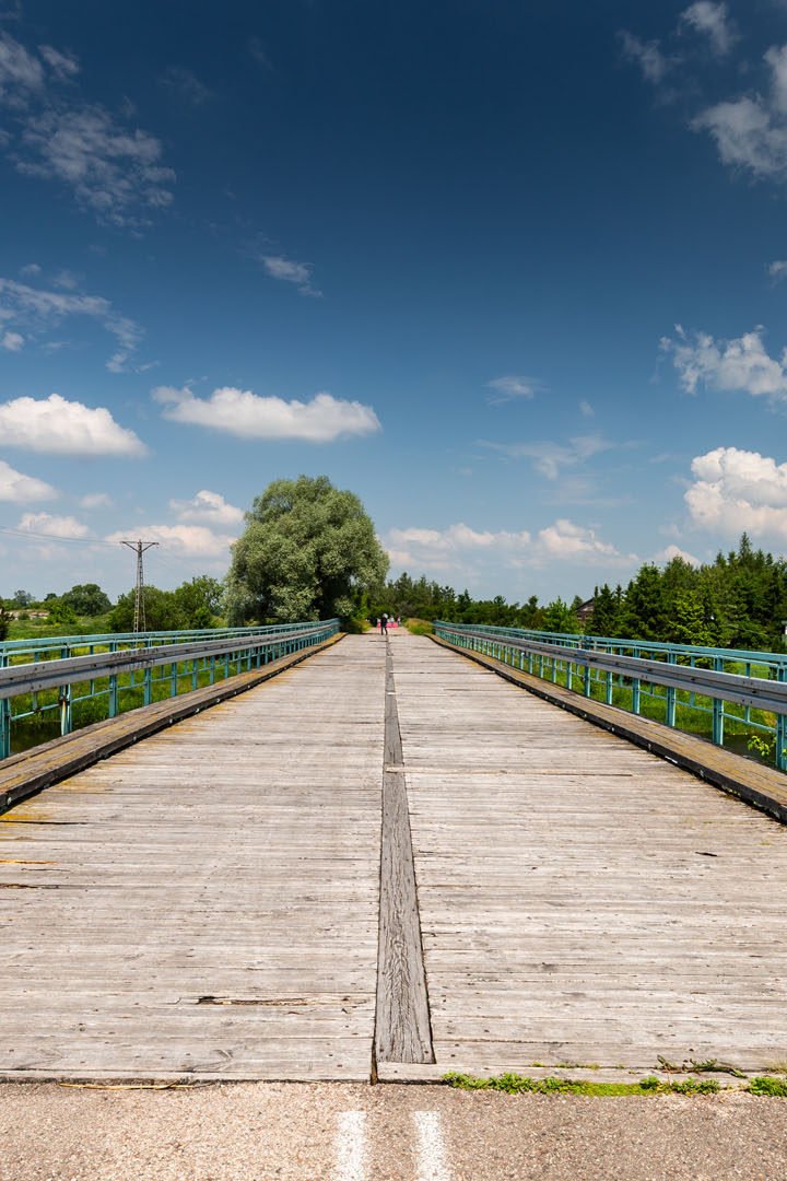 Z Carskiej Drogi skręciłem w lewo na drogę nr 65, przejechałem nad Biebrzą i skręciłem w pierwszą asfaltową drogę w prawo. Doprowadziła mnie ona do nieczynnego, drewnianego mostu. Po drodze zobaczyć można bunkry należące do Twierdzy Osowiec. Ten zespół umocnień z 1892 r. nigdy nie został zdobyty. W czasie I wojny światowej jego obrońcy przetrwali ponad pół roku oblężenia. W założeniu fortyfikacje miały zabezpieczać granice imperium rosyjskiego. Celowo ominąłem znajdujące się na terenie jednostki wojskowej Muzeum Twierdzy Osowiec i wybrałem się na spacer wśród rozrzuconych nad rzeką bunkrów. Co ciekawe most, którym przejechałem nad Biebrzą, był pierwszym na mojej trasie, a od ujścia w linii prostej dzieliło mnie prawie 30 km.