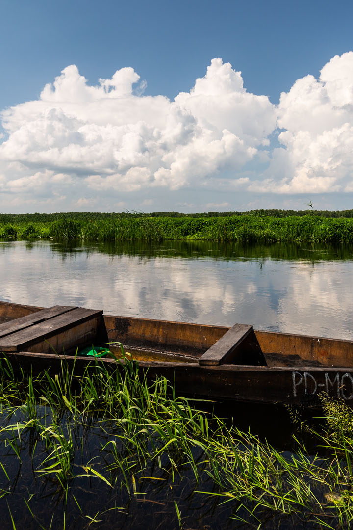 Goniądz opuściłem boczną drogą prowadzącą do Dawidowizny. Tam pomiędzy domami znaleźć można dojście do rzeki. Następnie dojechałem do drogi nr 670 i udałem się nią do Wrocenia. To kolejna wioska przy samym brzegu. W tamtym momencie nie spodziewałem się, że spędzę noc na polu namiotowym Dolina Biebrzy. Co prawda podziwiałem piękne burzowe chmury na tle rzeki i bagien, ale nic nie zwiastowało tego, co miało nadejść wieczorem.