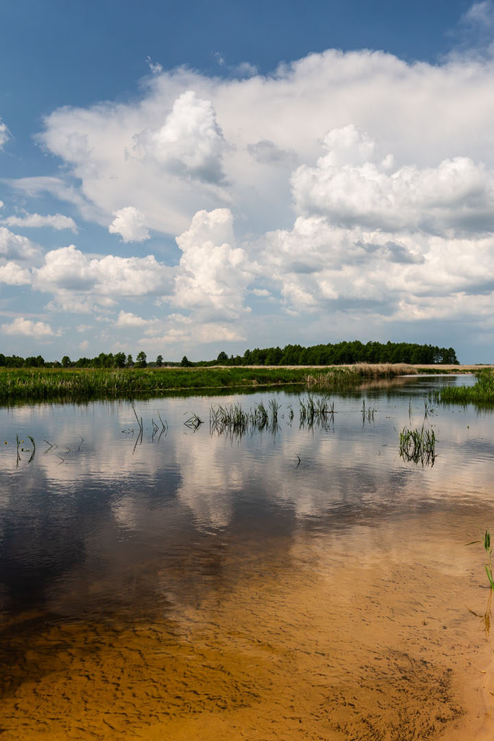 Odcinek pomiędzy Dolistowem Starym a Jasionowem należy do moich ulubionych. Można tam z bliska podziwiać pięknie meandrującą wśród pól dziką rzekę. Kiedy dotarłem do Jasionowa, stwierdziłem, że jest to dobre miejsce na nocleg. Nie wiem kiedy zrobiła się prawie 17.00. Wjechałem w polną drogę i zaparkowałem metr od rzeki. Rozstawiłem namiot dachowy i poszedłem wykąpać się w Biebrzy. Wychodząc z wody, zauważyłem na południu kłębiące się burzowe chmury. Szybko oceniłem, że jeśli zrobi się mokro i grząsko, nie dam rady wydostać się z tego zakątka bez pomocy traktora. Wyjechałem na szutrową drogę i lunęło jak z cebra. W momencie świat zmienił się nie do poznania. Szutrowa droga do Dolistowa, z której jeszcze chwilę wcześniej unosił się pył, stała się błotnistym szlakiem pełnym głębokich kałuż. Postanowiłem nie kusić losu i udałem się na noc na pole namiotowe we Wroceniu. Cały wieczór obserwowałem przez okno namiotu, jak pioruny uderzały o ziemię po drugiej stronie rzeki. Na wysokim brzegu, z dala od wody mogłem spokojnie zasnąć.