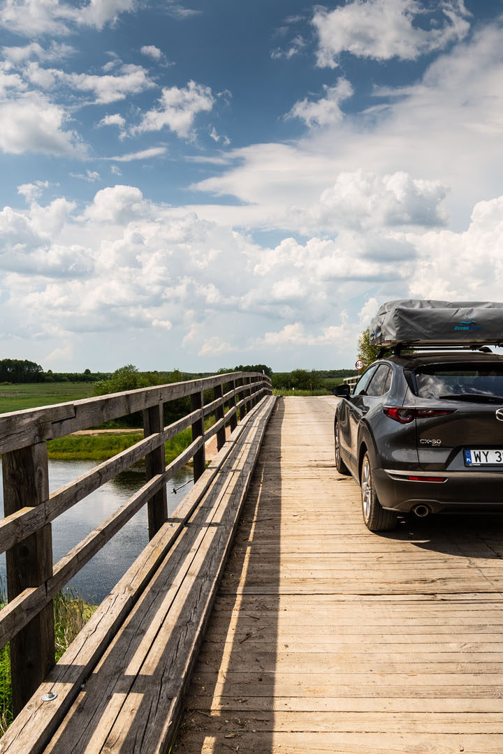 Trasa wzdłuż Biebrzy od ujścia do źródeł to coś dla prawdziwych koneserów slow roadu. Brakuje na niej wszelkich udogodnień dla turystów. Nie ma gdzie zjeść, brakuje oznaczeń i jasnych wskazówek, jak dotrzeć w ciekawe miejsca. Trzeba umiejętnie korzystać z mapy i GPS-u, ale też nastawić się na czerpanie radości z najdrobniejszych rzeczy. Czasami będzie to samotna łódka zacumowana przy brzegu. Czasami napotkany po drodze rolnik, najlepszy przewodnik po okolicy. Ta trasa uczy, jak cieszyć się detalami. Na niej samemu tworzy się atrakcje turystyczne. Na całe szczęście możliwości jest po drodze bez liku. Polecam tę wycieczkę wszystkim, którzy lubią czerpać przyjemność z jazdy. To również okazja do przetestowania wszystkich możliwych systemów kontroli trakcji w samochodzie. Momentami przyda się napęd 4×4, a kiedy indziej cierpliwość do mozolnego pokonywania odcinków po „kocich łbach”.