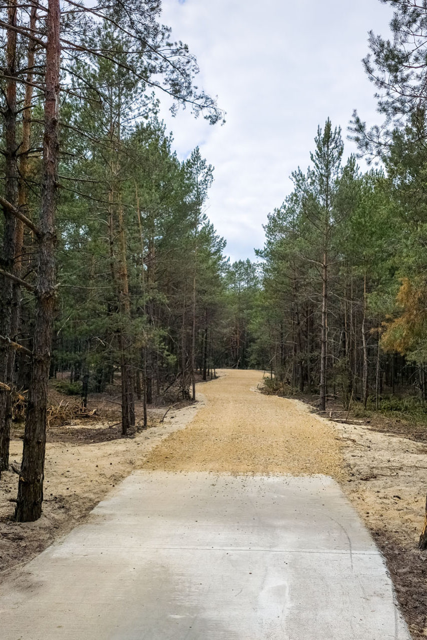 Trasa, którą zaplanowałem, miała 18 km. Jest to odległość, którą na rowerze prawdopodobnie pokona każdy, nawet bez przygotowania i kondycji. Technicznie ten przejazd nie stwarza żadnych problemów. W połowie jedzie się betonową drogą, na której bez problemu można minąć się z kimś z przeciwka, a druga połowa to szeroka i mocno ubita leśna droga. Suma podjazdów to tylko 50 m, więc śmiało można stwierdzić, że cała trasa jest płaska.