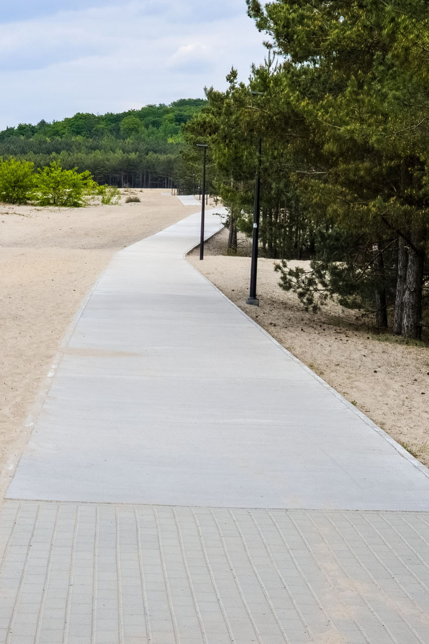 Jak się jedzie? Przyznam, że w części, gdzie szlak prowadzi betonową drogą wśród piasków, jest to bardzo przyjemne. Widoki są ciekawe i zmienne. Z jednej strony jest morze piasku, z drugiej sosnowy las. Jest kilka miejsc przystosowanych do postoju. Większym rozczarowaniem dla mnie był moment, kiedy beton się skończył, a wraz z nim zniknęła mi z oczu pustynia. Wjechałem do sosnowego lasu i nagle czar prysł. Takie drogi spotkać można w całej Polsce. Lekko zawiedziony jechałem przed siebie z nadzieją, że jeszcze wrócę na pustynię. Tak się jednak nie stało.