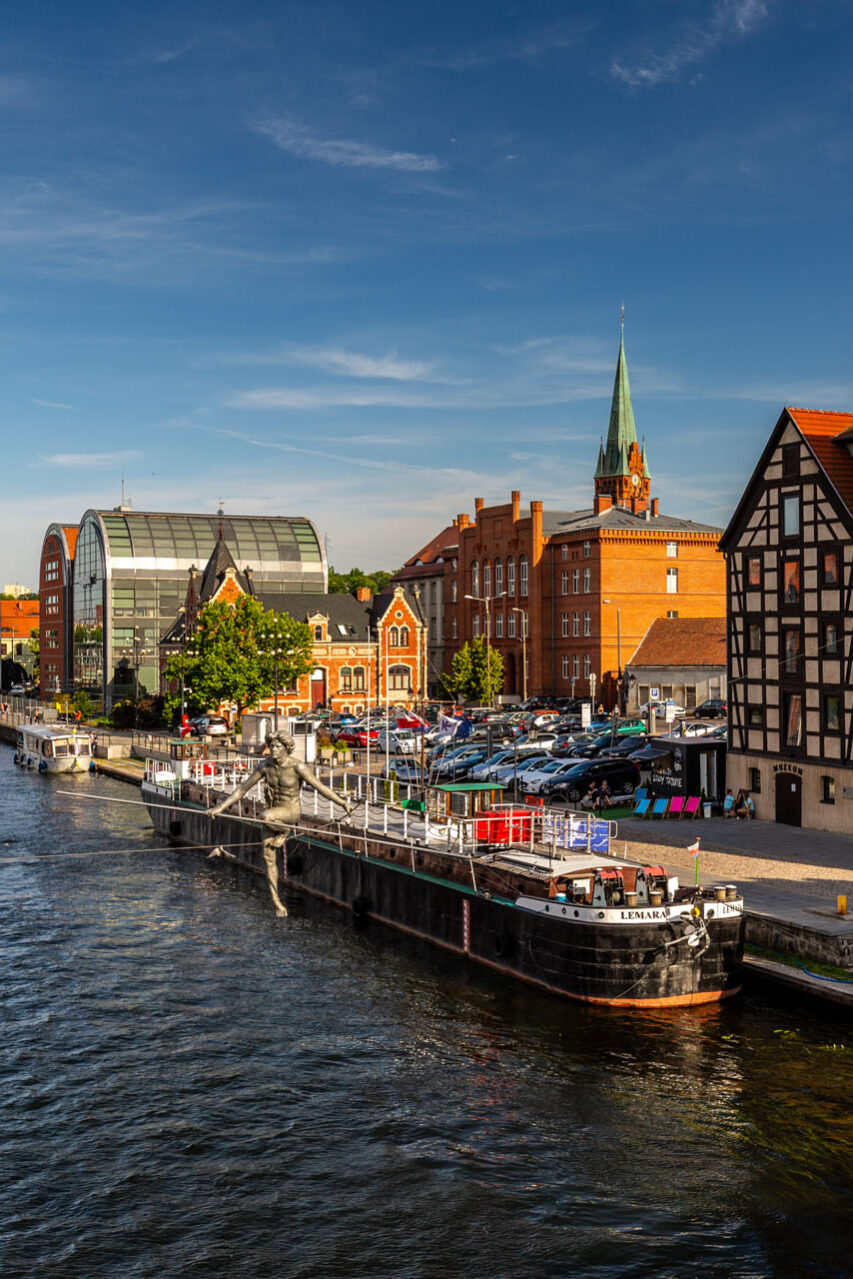 Po wyjściu z ECP skręciłem w lewo i po kilku krokach stanąłem przed zabytkowym, szachulcowym budynkiem, w którym mieści się wystawa archeologiczna. To fascynująca lekcja historii – dzięki pracy badaczy możemy „czytać” z ziemi opowieści o czasach, z których nie zachowały się żadne źródła pisane. Ta wizyta zrodziła w mojej głowie sporo pytań o początki miasta, a odpowiedzi na wiele z nich znalazłem w kolejnym oddziale – w Spichrzach nad Brdą. Te charakterystyczne budynki są wizytówką Bydgoszczy. Droga do nich wiodła przez Most Jana Kiepury, z którego podziwiałem nowoczesną bryłę Opery Nova, pięknie kontrastującą z historyczną zabudową.