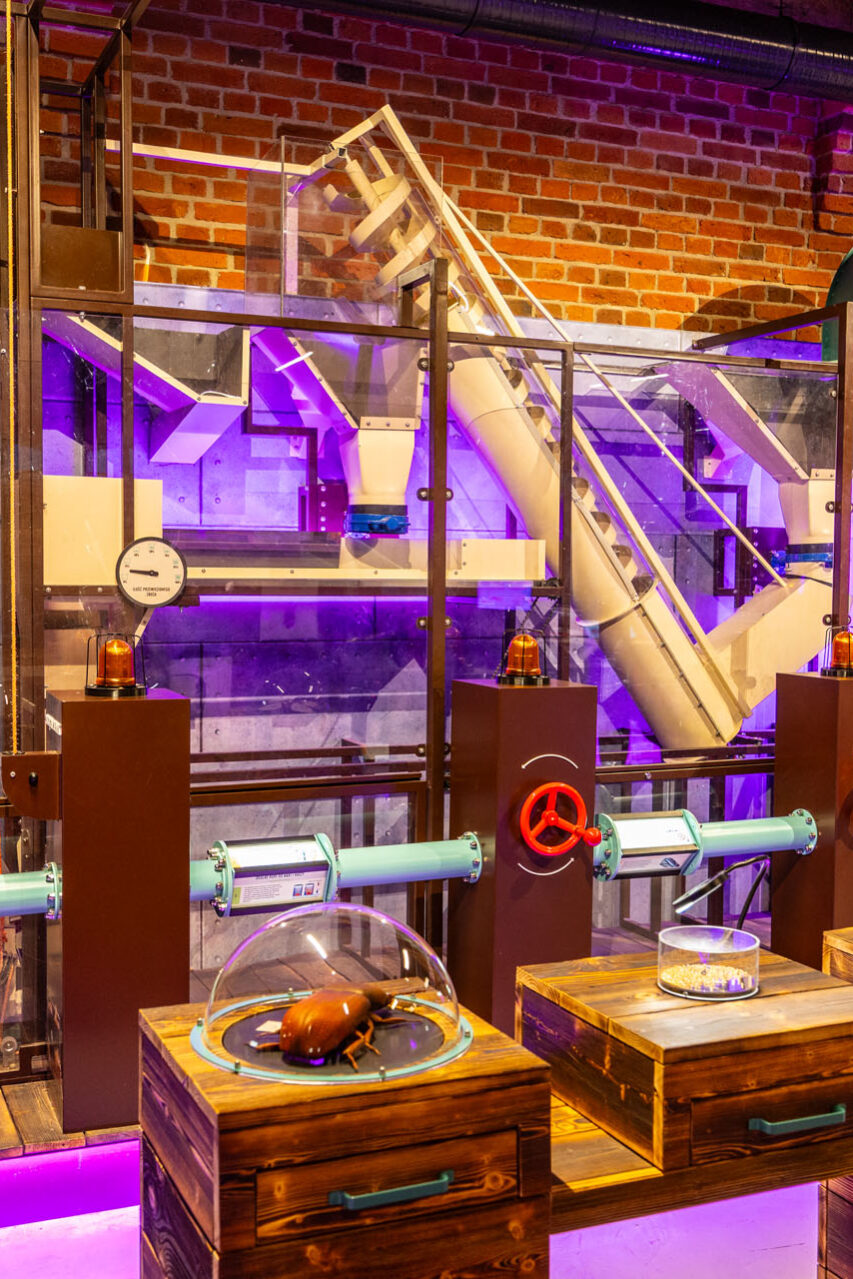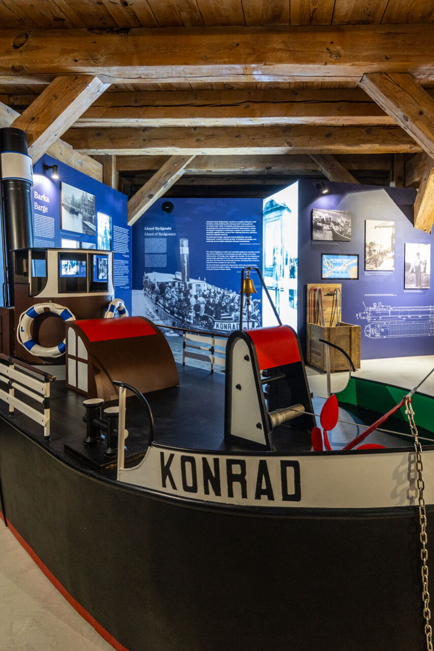 W tym samym kompleksie budynków znajdują się niezwykle ciekawe wystawy. Zwiedzanie zacząłem od ekspozycji „Węzły. Opowieść o mieście nad rzeką”. To tutaj w pełni uporządkowałem i uzupełniłem wcześniej zdobytą wiedzę. Dzięki nowoczesnym multimediom i stanowiskom interaktywnym mogłem niemal namacalnie poczuć klimat dawnej Bydgoszczy. Jeśli jednak mowa o autentycznym doświadczaniu, to prawdziwe emocje czekały na mnie na kolejnej wystawie – „Młyn-Maszyna”. To była genialna zabawa! Mogłem nie tylko dowiedzieć się, jak działał dawny młyn, ale także własnoręcznie wprawić w ruch wielkie koła zębate i poznać mechanizmy, które przez dziesięciolecia napędzały to miejsce.