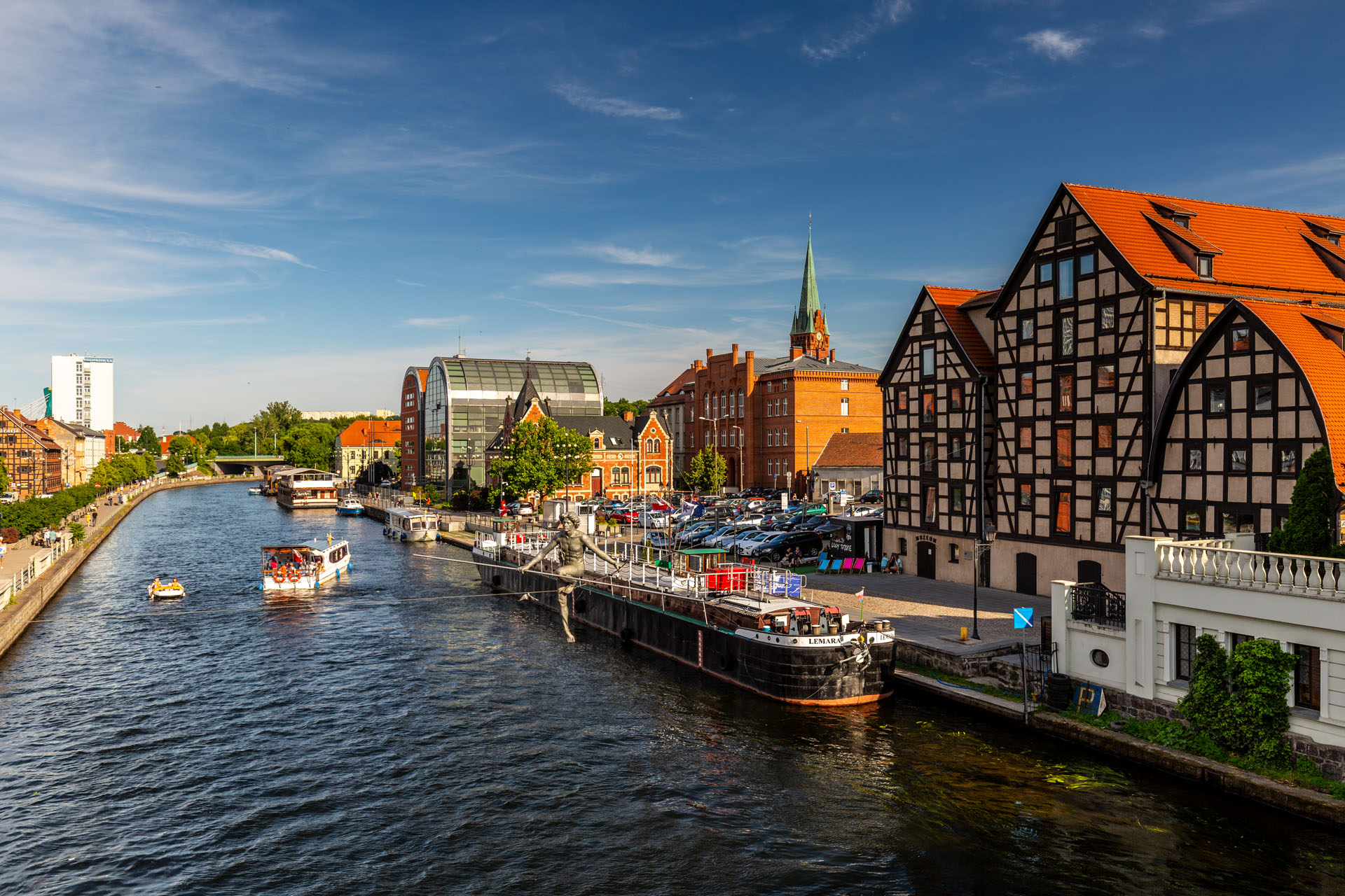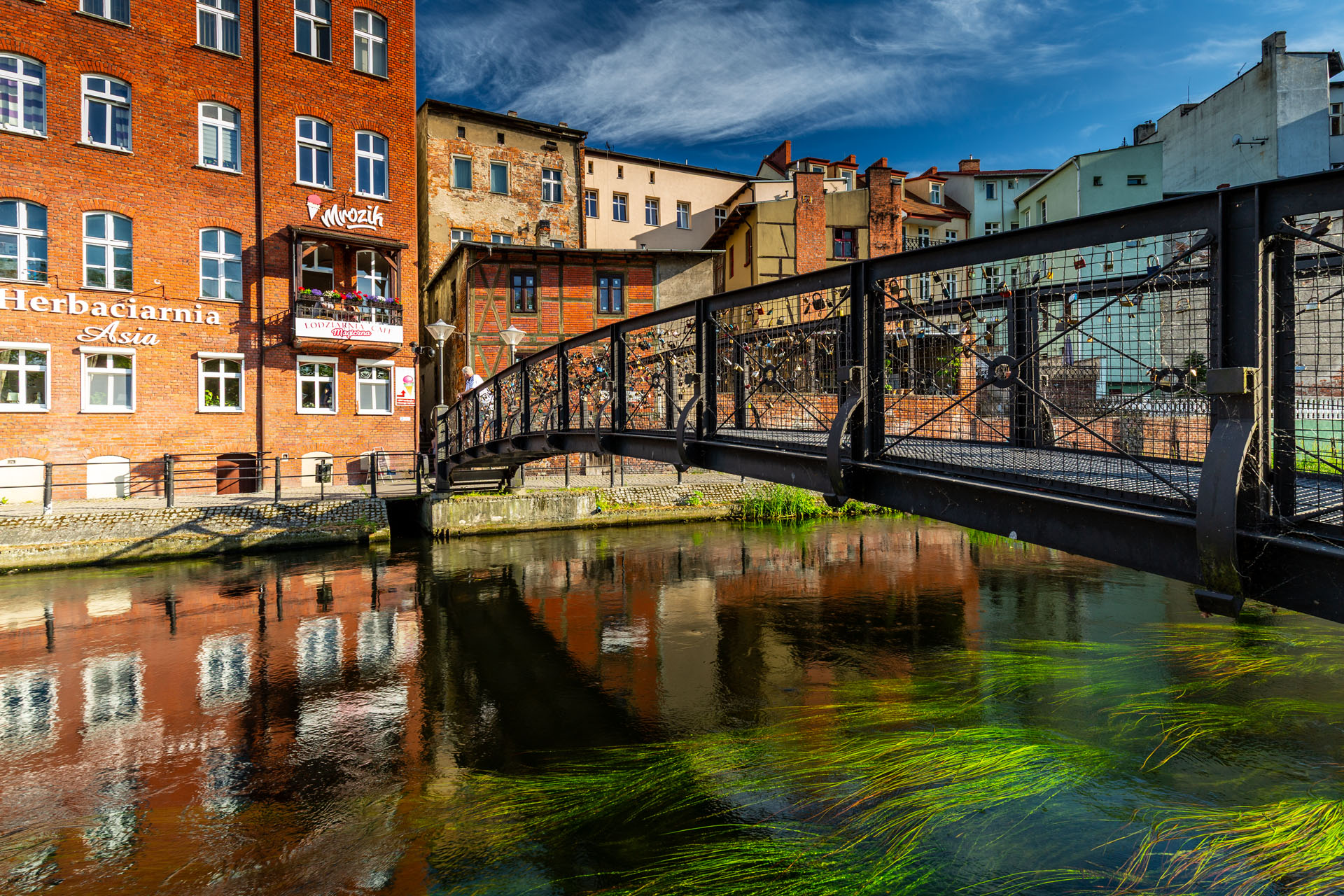 Noc na Wyspie Młyńskiej upłynęła spokojnie. Na poranną kawę wybrałem się pieszo na Stary Rynek. Po drodze znów chłonąłem atmosferę bydgoskiej Wenecji i muszę przyznać, że to miejsce ma w sobie coś naprawdę magnetycznego. Korzystając z tego, że rano w mieście panuje jeszcze kojący spokój, poszedłem na dłuższy spacer wzdłuż Brdy ulicą Stary Port aż do Mostu Bernardyńskiego, by wrócić drugą stroną rzeki w kierunku katedry pw. św. Marcina i Mikołaja.