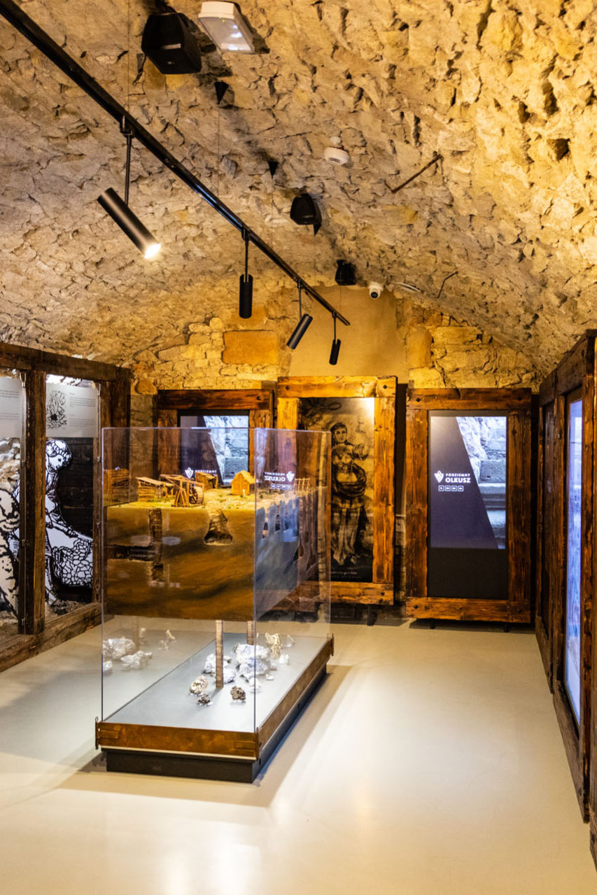 Wyjeżdżając z Rudna w kierunku Olkusza, trzeba wrócić z parkingu przy zamku do głównej szosy i kierować się do Woli Filipowskiej, przeciąć drogę nr 79 i następnie przez Nową Górę i Niesułowice dojechać aż na olkuski Rynek. Dookoła niego wytyczono sporo miejsc parkingowych. Z tego punktu wszystkie najważniejsze atrakcje są na wyciągniecie ręki. Zwiedzanie najlepiej rozpocząć od podziemnej trasy turystycznej. Pierwsza z ekspozycji mieści się w piwnicach XIV-wiecznego ratusza, a wejście do drugiej wystawy znajduje się na płycie Rynku. Została ona przygotowana w pozostałościach piwnic dawnego Kwartału Królewskiego. Ekspozycja w ratuszowych piwnicach traktuje głównie o historii Olkusza, która przy bliższym poznaniu jawi się niezwykle ciekawie. Nie sposób kreślić dziejów tego miasta bez sięgnięcia po tradycje górnicze i to właśnie tej karcie z przeszłości poświęcona jest druga z wystaw, znajdująca się pod Rynkiem. W czasie tej podziemnej przygody wyjaśniona zostaje geneza powiedzenia: Gdzie diabeł nie może, tam babę pośle. Jak głosi legenda związana z czarnoksiężnikiem Twardowskim i jego potyczkami z diabłem, to właśnie ów czart, bezsilny wobec grabieży jego skarbów, miał użyć płynącej przez Olkusz rzeki Baby do ochrony swoich dóbr. Mało znanym faktem z historii miasta jest także to, że było ono w przeszłości prężnym ośrodkiem wydobycia srebra i ołowiu. Dlatego na Olkusz mówi się czasem Srebrne Miasto. Oba te podziemne światy prezentują historię w sposób ciekawy i angażujący. Wystawy otwarte zostały w 2021 r. i z pewnością znajdą się w czołówce atrakcji turystycznych regionu.