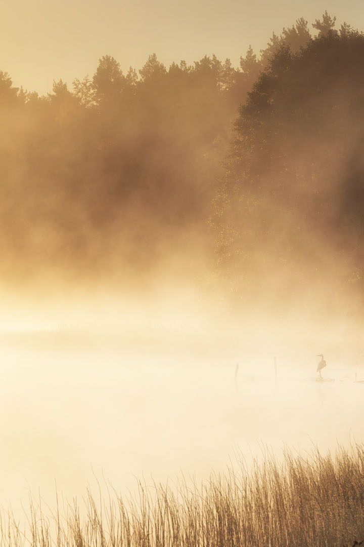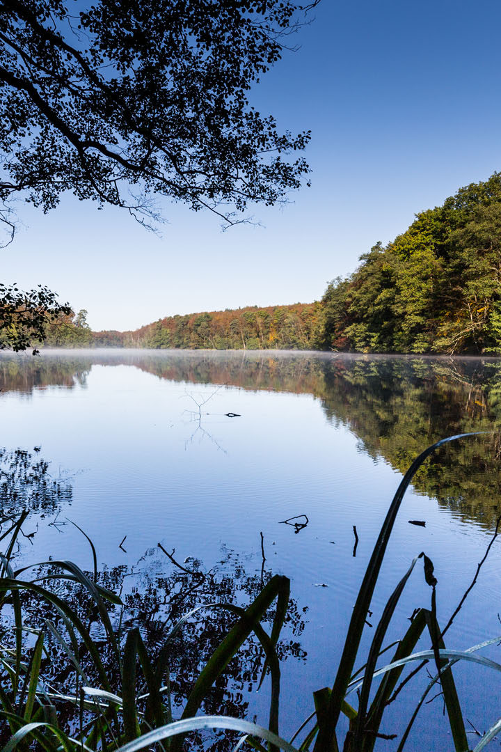 Na koniec wizyty nad Jeziorem Junno udałem się do leśniczówki Mirachowo. Tam zaparkowałem i wybrałem się krętą droga w dół nad przepiękne jezioro Lubogoszcz. Jest otoczone ze wszystkich stron lasem, przez co pejzaże są tam iście bajkowe. Dzięki temu, że znajduje się w niecce, na jego powierzchni często widać wyraźne odbicie drzew z brzegu. Wróciłem w kierunku Kamienicy Królewskiej, żeby wybrać się nad Wielkie Jezioro w rezerwacie Kurze Grzędy. Otacza je malownicze torfowisko, a na miejscu natrafiłem na zalany wodą pomost. Można z niego podziwiać taflę wody.