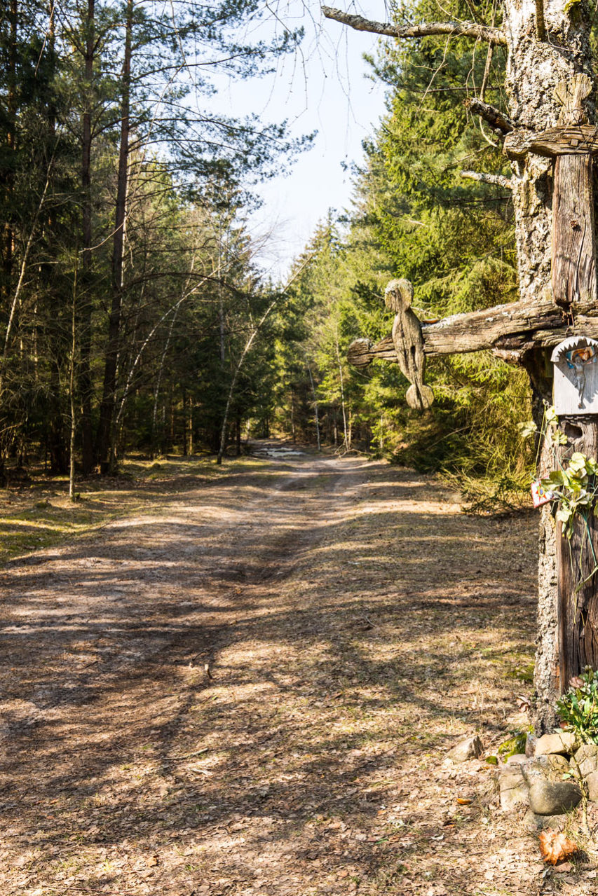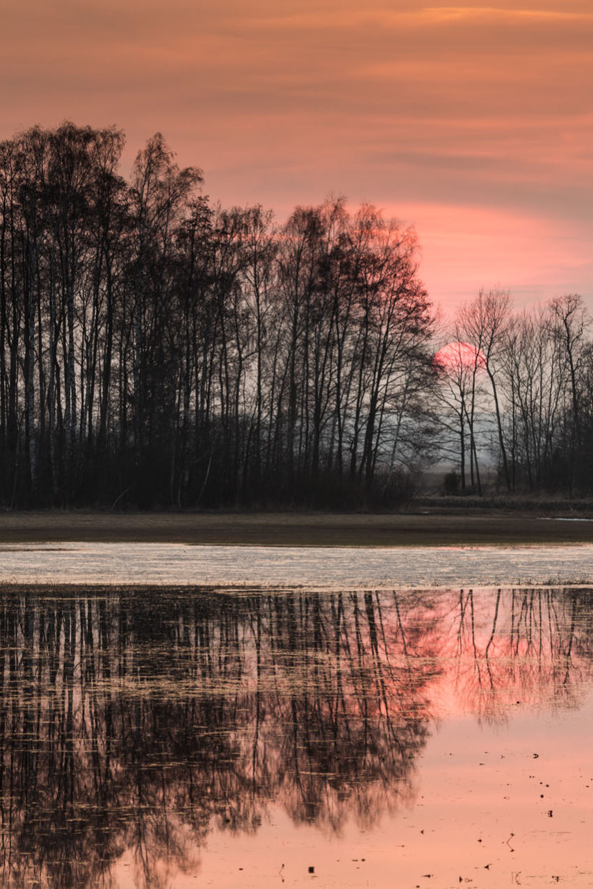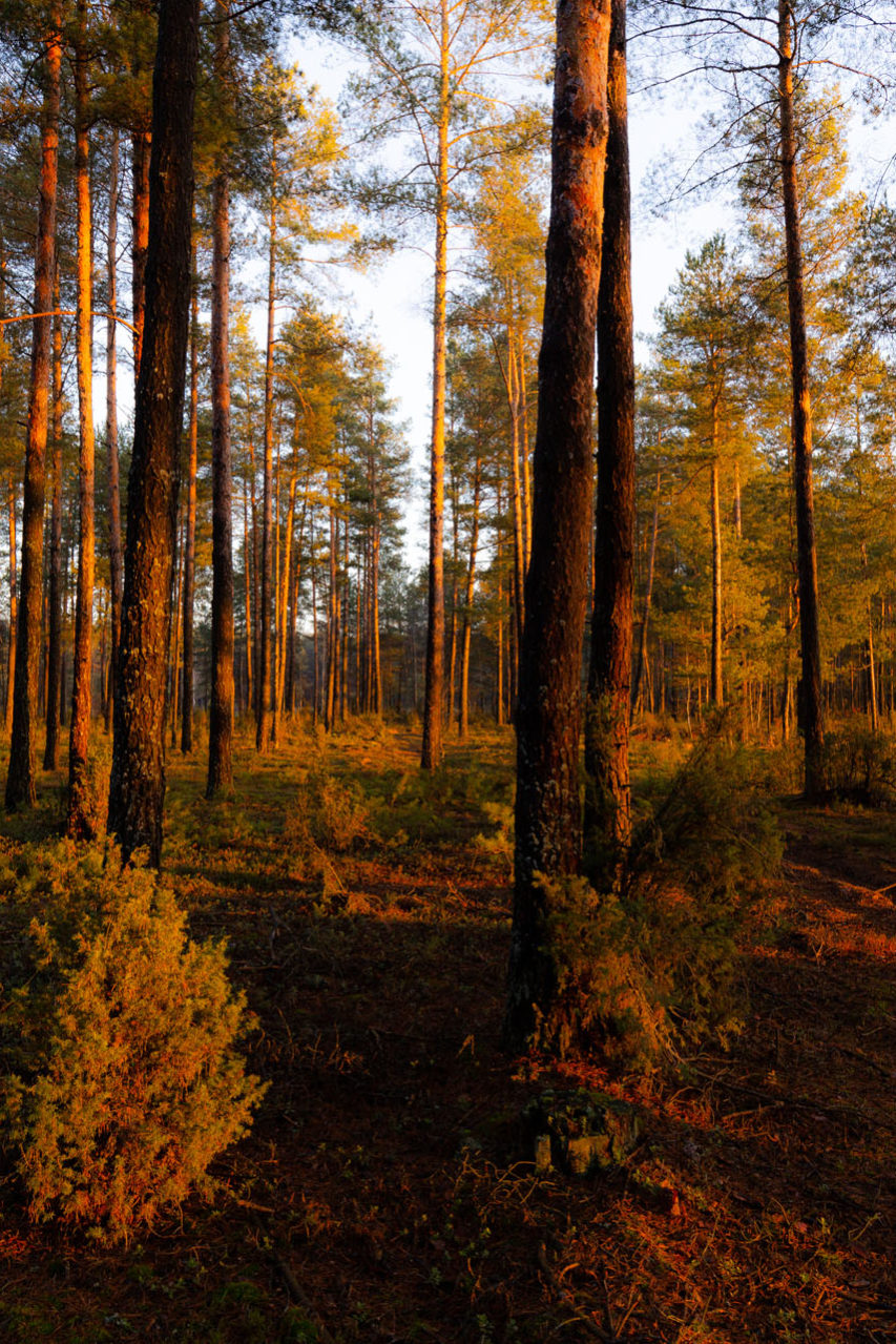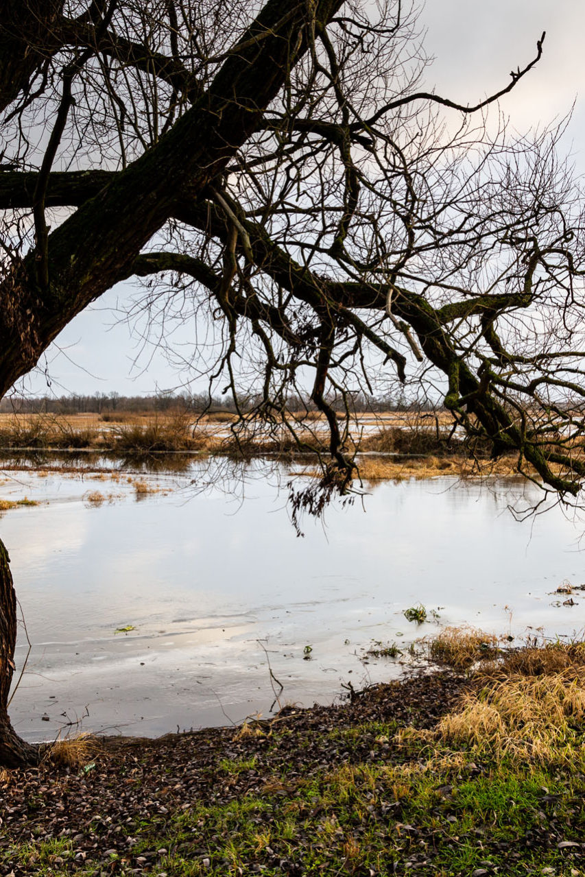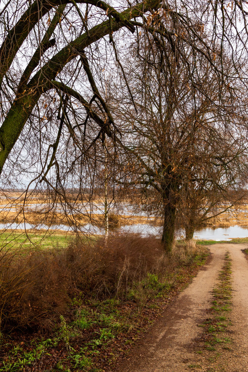 Tuż po 6.00 zjadłem owsiankę i ruszyłem na Carską Drogę w poszukiwaniu łosi. Miałem przeczucie, że nic z tego nie wyjdzie. Kolejny raz pogoda mnie zaskoczyła. Niebo było bezchmurne. Jedynie zimny wiatr wpływał na zimowy odbiór tych pejzaży. Pospacerowałem po lesie w okolicach Uścianka i kiedy zrobiło się cieplej, a drogi rozmiękły, postanowiłem jechać dalej. Była już prawie 9.00, kiedy dotarłem do Goniądza.