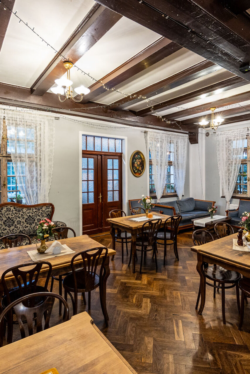 Jego dzieje sięgają 1884 roku i są związane z rosnącą popularnością malowniczej doliny, w której jest położony. Najpierw powstała w tym miejscu niewielka leśna gospoda, a już w połowie lat 20. XX wieku otwarto w niej restaurację z prawdziwego zdarzenia. To właśnie jej trójkątny kształt podziwiamy dzisiaj, przyjeżdżając na nocleg do Złotego Jaru. Po II wojnie światowej dolina przestała być tłumnie odwiedzana przez turystów, a w pensjonacie przez wiele lat funkcjonował ośrodek kolonijny dla dzieci. W 2015 roku budynek trafił w ręce Gosi Szumskiej, znanej na Instagramie jako Meg Małgorzata Szumska, która tchnęła w niego nowe życie i nadała jego zabytkowym wnętrzom zupełnie nową jakość.