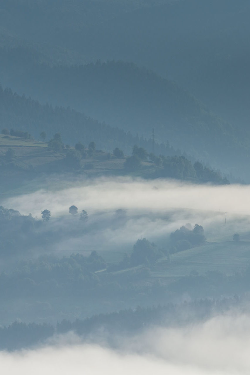 Beskidu Niskiego nie da się tak do końca poznać. Ta kraina to prawdziwa ostoja dzikości, której nie znajdzie się już chyba nigdzie indziej w Polsce. Natura przy pomocy różnych narzędzi – błota, zieleni czy wody – tworzy tam niedostępne enklawy. Trudno dzisiaj uwierzyć, że przed II wojną światową na większości wzgórz nie było drzew, a każda dolina usiana była gęsto domami. We wsiach rozbrzmiewał cerkiewny śpiew. Wiele już napisano o wielobarwnym świecie Łemków, który w naszej świadomości zdaje się czarno-biały. To kwestia przekazu i tego, że nieliczne obrazy, które przetrwały do dziś, są właśnie w takich barwach. Wystarczy jednak wejść do którejkolwiek z ocalałych cerkwi, żeby zobaczyć wnętrza emanujące kolorami. Dzisiaj Beskid Niski to monochromatyczna kraina. Latem zielona, jesienią złota, zimą skąpana w śnieżnej bieli, a wiosną w ciekawej mozaice brązów i budzącej się do życia zieleni.