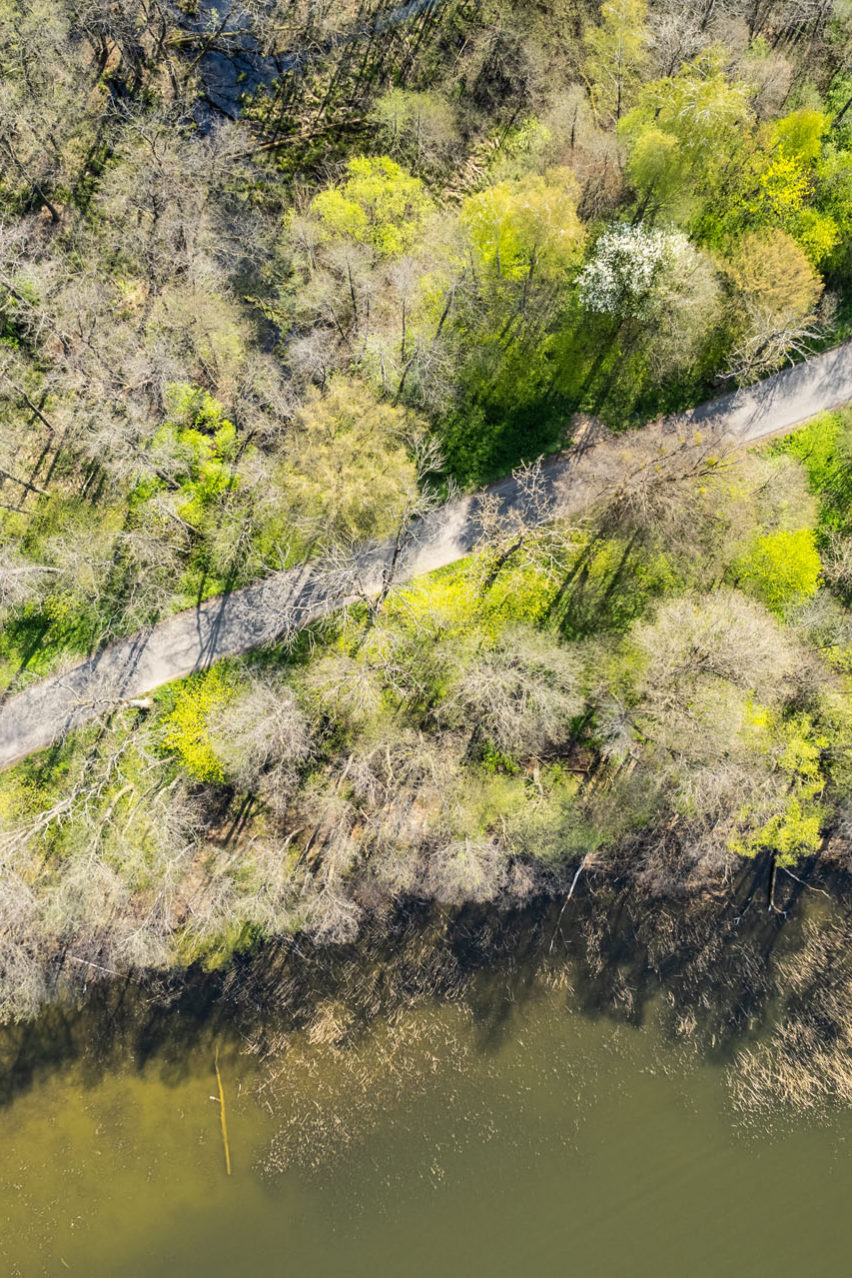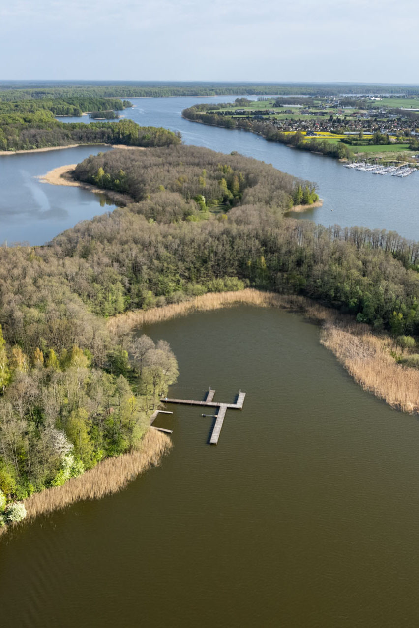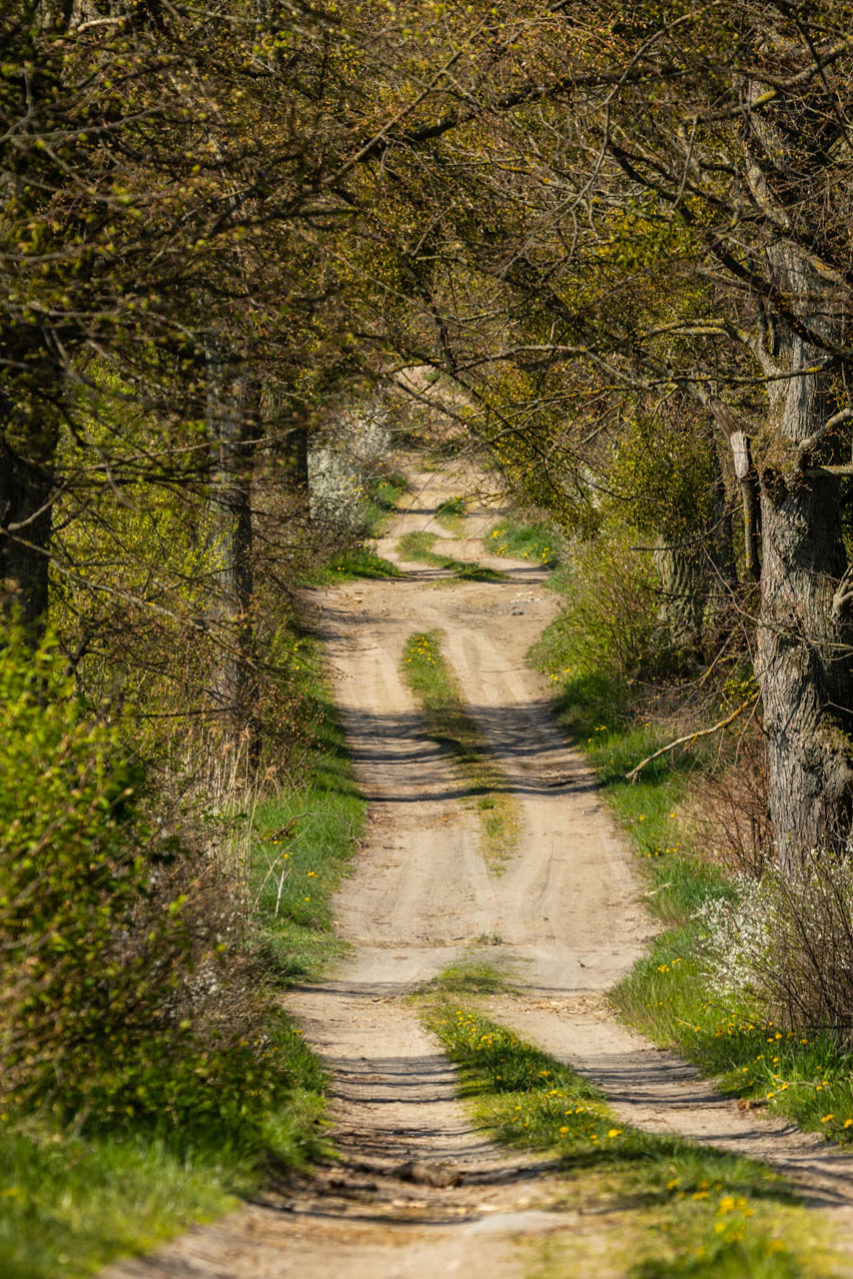 Jadąc dalej, musiałem na chwilę oddalić się od jeziora, bo tylko tak biegną drogi w kierunku wsi Wieprz i dalej na wyspę Bukowiec. Wyjeżdżając ze wsi Śliwa, szybko przestałem żałować tego objazdu, ponieważ do celu prowadziły mnie tak piękne aleje drzew, jakich w życiu nie widziałem. Na wyspę udałem się pieszo po grobli. Kiedy wróciłem było już samo południe, a okoliczne widoki nie zrobiły na mnie zbyt dużego wrażenia. Udałem się więc w kolejne miejsce, które zaznaczyłem sobie na mapie. Tu ważna uwaga: ten skok w bok jest tylko dla samochodów z wyższym zawieszeniem i najlepiej z napędem 4×4. Wszystko dlatego, że droga, początkowo szutrowa, z każdym metrem przeradza się w coraz bardziej leśną, a liczba dziur i nierówności rośnie wprost proporcjonalnie do pięknych widoków za oknem. Przeprawiałem się tam nie bez powodu. Chciałem odnaleźć ślady po dawnej pruskiej wsi Pomehlen, która jeszcze pod koniec XVIII w. składała się z 11 gospodarstw. Obecnie pod spolszczoną nazwą Pomielin nie sposób dojrzeć nawet pozostałości budynków w zaroślach. Tylko skarłowaciałe drzewa owocowe mówią o tym, że było tam kiedyś życie. Powtarzam jednak, że dojazd do tego miejsca jest wymagający, a po krótkiej wizycie w Pomielinie i tak wróciłem do drogi Wieprz – Śliwa i udałem się do wsi Dobrzyki, które z moich obserwacji są najdalej wysuniętym puntem Jezioraka na północ. Przedostałem się tym sposobem na zachodni brzeg i pojechałem do wsi Matyty, żeby zobaczyć Cieśninę Matycką. Podobnie na chwilę zajrzałem na plażę w Jerzwałdzie położonym nad Jeziorem Płaskim, które łączy się z Jeziorakiem. Mój pierwotny plan zakładał trzymanie się brzegu, ale na opłotkach wsi Jeziorno postanowiłem odejść od tego założenia. To wszystko za sprawą Jeziora Jasnego. Znajduje się ono na terenie rezerwatu przyrody „Jasne”, w którym sąsiadują ze sobą dwa różne i zarazem bardzo ciekawe ekosystemy. Pierwszym z nich jest ubogie we florę i faunę Jezioro Jasne. Natomiast drugie, Jezioro Lube, jest jego totalnym przeciwieństwem. W okolicach wsi Jeziorno z parkingu przy drodze można ścieżką przejść przez las aż nad brzeg jeziora, którego wody są krystalicznie czyste. Funkcjonuje ono zamiennie pod nazwą Jezioro Czyste lub Jasne, ale obie te nazwy bardzo trafnie oddają jego klimat. Stojąc na skraju brzegu, można na odległość kilku metrów bez problemu dostrzec piaszczyste dno. Według pomiarów światło przebija się w nim przez wodę na głębokość około 15 m. Docierając natomiast nad pobliskie Jezioro Lube, od razu można zauważyć, że jest ono gęsto zarośnięte przez lilie wodne, a na torfowiskach przy brzegu rośnie rosiczka okrągłolistna, turzyca czy mech torfowiec. To wszystko skusiło mnie na tyle, że wybrałem się na ponadgodzinny spacer po lesie.