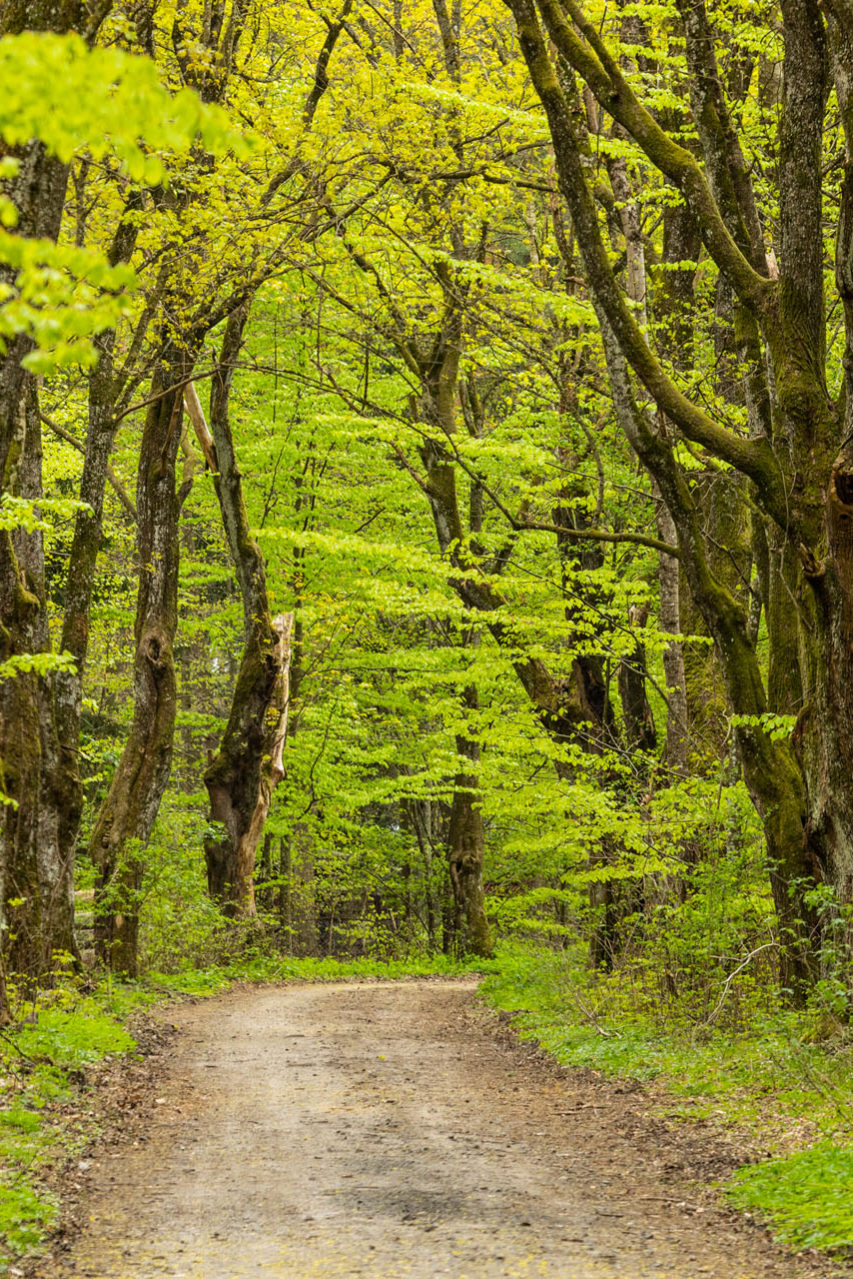 Początek trasy wyznaczył szczyt Dylewskiej Góry. Jest to najwyższy punkt Wzgórz Dylewskich i całej północno-wschodniej Polski. Wznosi się na wysokość 312 m n.p.m. W pobliżu znajduje się rezerwat przyrody „Jezioro Francuskie”. Ochroną zostały objęte torfowiska otaczające akwen, a także wiekowy las bukowy porastający brzegi. W rezerwacie występuje także relikt z epoki lodowcowej, czyli wierzba borówkolistna. Przydomek „francuskie” jezioro zyskało po tragicznych wydarzeniach z czasów wojen napoleońskich, kiedy to w jego wodach utopiono za karę żołnierzy francuskich, którzy mieli skrzywdzić miejscową dziewczynę. Samochodem dojedziemy w pobliże wieży widokowej na szczycie góry. Następnie można podążać albo szlakiem rowerowym, albo ścieżką dydaktyczną. Obie trasy malowniczymi jarami i wąwozami prowadzą w dół do jeziora. Jego brzegi są trudno dostępne i tylko z jednej strony znalazłem ścieżkę, którą bez tratowania przyrody można zejść nad wodę. Będąc nad jeziorem, widać, jak bardzo pofałdowany jest ten teren. To wszystko sprawka lodowca, który w czasie ostatniego zlodowacenia, nazywanego bałtyckim, ukształtował rzeźbę tego terenu. W lesie wypełnionym szumem liści oraz śpiewem ptaków trudno wyobrazić sobie, z jaką siłą lodowiec działał w tym miejscu przed tysiącami lat. Lądolód vistuliański pozostawił sporo śladów swojej działalności – rynnowe jeziora, wzgórza morenowe czy przecinające je wąwozy. Na samym początku spaceru do Jeziora Francuskiego zobaczyć można plenerowe „muzeum”, w którym przeważają głazy narzutowe przyniesione przez lód. Wędrowały w lodzie ze Skandynawii, a kiedy nastąpiło ocieplenie, na zawsze osiadły w polskiej ziemi.