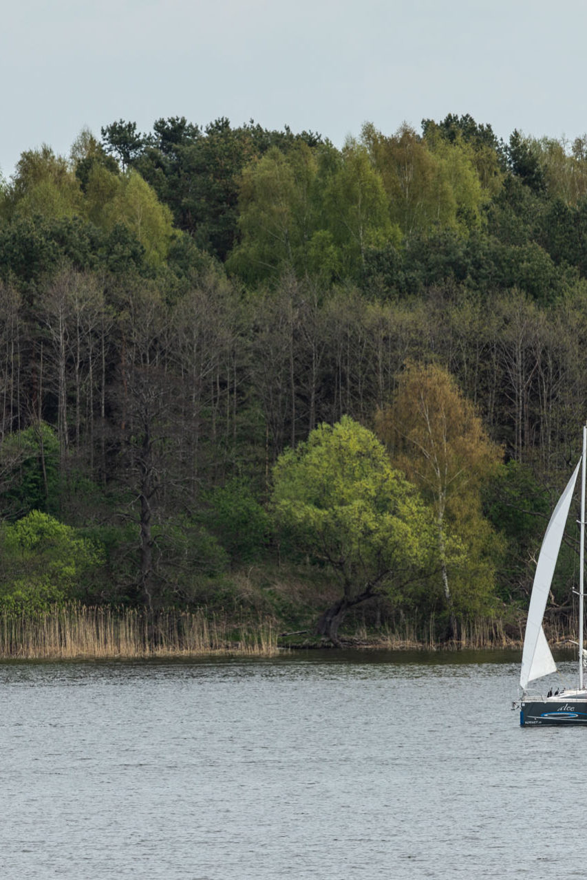 Do Jezioraka dojechałem od ul. Chodkiewicza, gdzie znajduje się Port Iława. Wyszedłem na plażę miejską „Prawdziwka”, spojrzałem na północ i rozpocząłem przygodę, którą zaplanowałem na 4 godziny. W tym czasie chciałem objechać dookoła jezioro i wrócić w to samo miejsce. Plan by się powiódł, gdyby nie skok w bok do rezerwatu przyrody „Jasne”, ale o tym za chwilę. Teraz trochę o samym Jezioraku, czyli kilka suchych faktów, jak na temat wodny przystało. To najdłuższe jezioro w Polsce osiąga 27,45 km. Urody dodaje mu to, że jest stosunkowo wąskie do długości, ponieważ w najszerszym miejscu rozlewa się na przestrzeni 2,4 km. Również głębokość postanowiła pójść w ślady szerokości i w kontraście do długości średnio wynosi tylko około 4 m, a maksymalnie dno znajduje się 12,9 m pod wodą. Zachodni brzeg jeziora porośnięty jest lasami, przez co dojście do niego jest mocno utrudnione i dopiero w części północnej znaleźć można miejscowości, z których jest widoczne. Wzdłuż wschodniego brzegu ciągnie się gęstsza linia zabudowy, ale niestety dostęp do wody ograniczają tam tereny prywatne. Jezioro ma bardzo ciekawie rozwiniętą linię brzegową z licznymi zatoczkami i półwyspami. Na jego powierzchni znajduje się aż 16 wysp różnej wielkości. Największa z nich to Wielka Żuława, która jednocześnie jest jedną z większych śródlądowych wysp w Polsce.