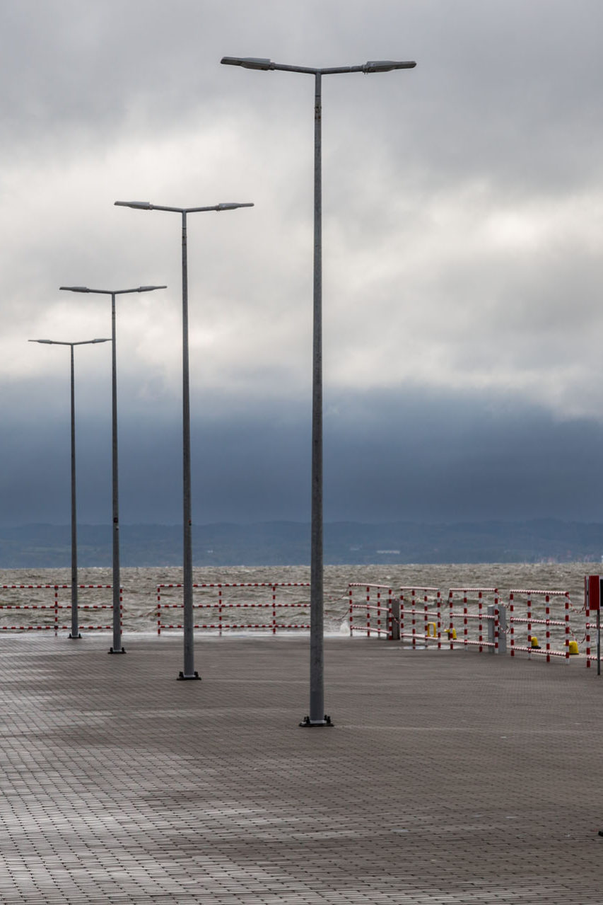 Końcowym punktem trasy była Krynica Morska. Z jednej strony miasto oblane jest przez Zatokę Gdańską, a z drugiej przez Zalew Wiślany. Zastałem tam iście posezonowy krajobraz, który nie był dla mnie zaskoczeniem. Miasto zdawało się wymarłe. Na plaży od strony zatoki dojrzałem kilka osób. Na ulicach jednak nie widziałem nikogo, podobnie na przystani pasażerskiej od strony zalewu. Latem to miejsce tętni życiem, ponieważ wypływają stąd tramwaje wodne do Fromborka i Tolmicka. Teraz hulał wiatr, który złowieszczo świszczał w zamkniętym na cztery spusty wesołym miasteczku. Patrząc na odległy drugi brzeg zatoki, zakończyłem moją przygodę.
