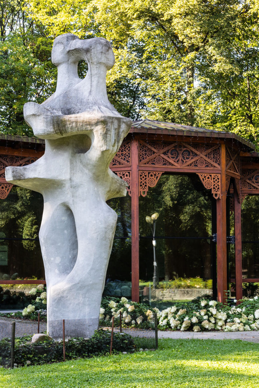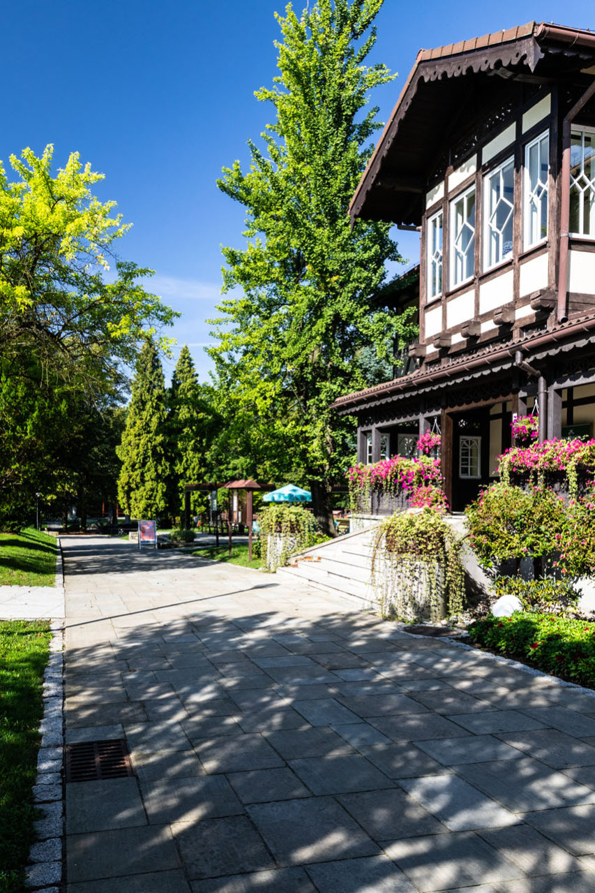 Plątaniną dróg z Raciborza dotarłem do Jastrzębia-Zdroju. Generalnie można przyjąć, że trasa wiedzie najpierw drogą nr 935, a następnie, od Rzuchowa, nr 933. Przyznam, że to miasto bardziej kojarzy mi się z kopalniami i przemysłem niż częścią uzdrowiskową, więc byłem bardzo ciekawy, jak to wygląda. Na miejscu pozytywnie zaskoczył mnie Park Zdrojowy im. dr Mikołaja Witczaka. Założono go w połowie XIX w. i w jego otoczeniu zlokalizowano większość sanatoriów. Teren do spacerowania nie jest duży, więc można potraktować to miejsce jako miły przerywnik w podróży. Kawę można wypić albo w letniej kawiarence mieszczącej się w zabytkowej altanie, albo w pierwszym domu zdrojowym, jaki tu powstał w 1862 r., w tak zwanej Szwajcarce. Nazwa pochodzi od charakterystycznego stylu architektonicznego, w jakim uzdrowisko zostało wybudowane.