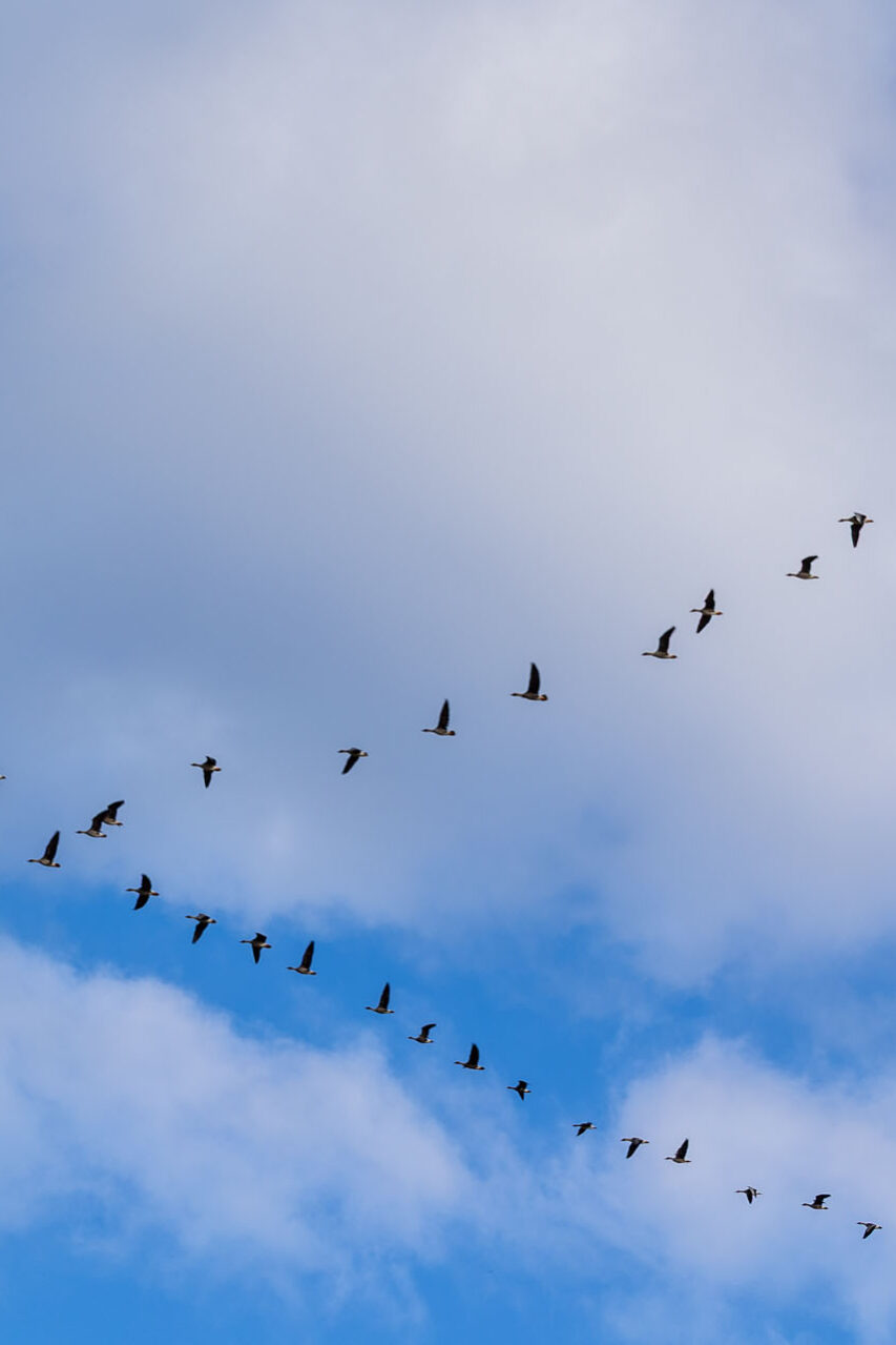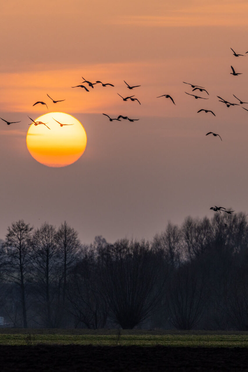 Od zarania dziejów pojawiające się na niebie klucze gęsi zwiastują przełom. W 2026 roku apogeum przelotu stad nad Biebrzą przypadło na połowę marca. To dość wcześnie – jeszcze piętnaście lat temu ten spektakl obserwowałem dopiero na początku kwietnia. Miałem sporo szczęścia, trafiając nad rzekę w samym szczycie migracji.