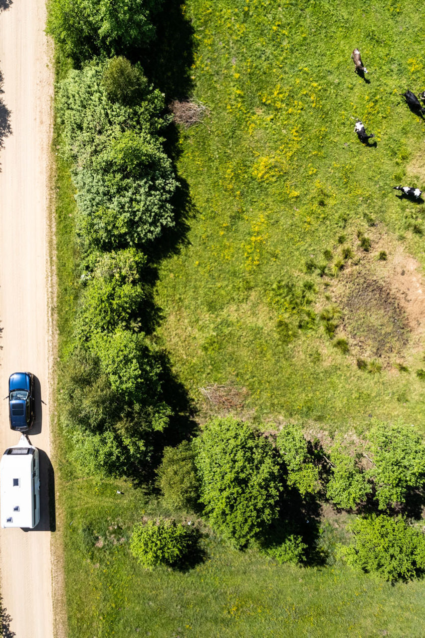 Tym razem w podróży przez Suwalszczyznę do Mazdy CX-60 mieliśmy przypiętą przyczepę kempingową. Nie odważyliśmy się jedynie na przejazd odcinka z Łopuchowa do Błaskowizny. Nawet nie ze względu na stan nawierzchni, co na szerokość drogi. Poza tym nigdzie nie mieliśmy problemów z przejazdem. W pamięci mamy jednak marcowy przejazd z Wodziłek do Udziejek i wtedy droga była naprawdę błotnista i bez napędu 4×4 nie dało się jej przejechać. Z tych względów rekomendujemy pokonywanie tej trasy w okresie od końca maja do końca października, z wyłączeniem czasu po obfitych opadach.