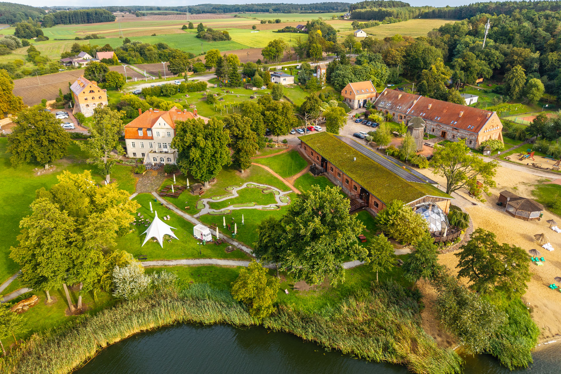 Przez ceglaną bramę wjechałem na teren dawnego folwarku. Jego korzenie sięgają XVIII wieku, a mimo upływu lat udało się zachować pierwotny układ. Zmieniło się jedynie przeznaczenie: w zabytkowych wnętrzach spichlerza, dworu i kamiennika działają obecnie hotel i restauracja.