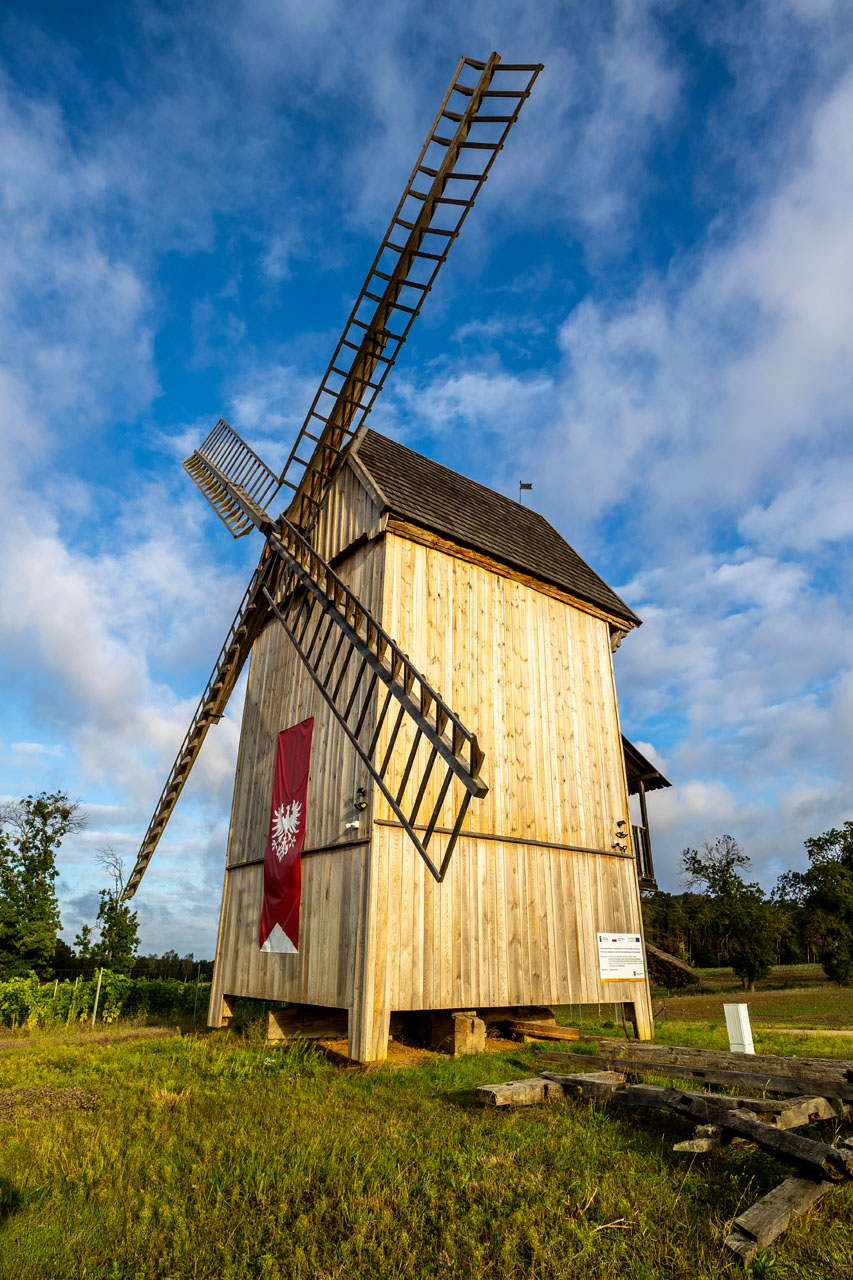 Po zjeździe z autostrady zwolniłem dosłownie i w przenośni. Zaczęły mnie fascynować krajobrazy za oknem, które z każdym kilometrem stawały się coraz ciekawsze. To wszystko zasługa lodowca, który przed tysiącami lat wyrzeźbił tę krainę. Minęło niespełna trzydzieści minut na drodze numer 24 i zobaczyłem drogowskaz z napisem „Prusim”. Gdyby go nie było i tak wiedziałbym, że to w tym miejscu muszę skręcić, a podpowiadały mi to trzy drewniane wiatraki stojące przy drodze. Był to nieomylny znak, że Olandia jest już blisko.