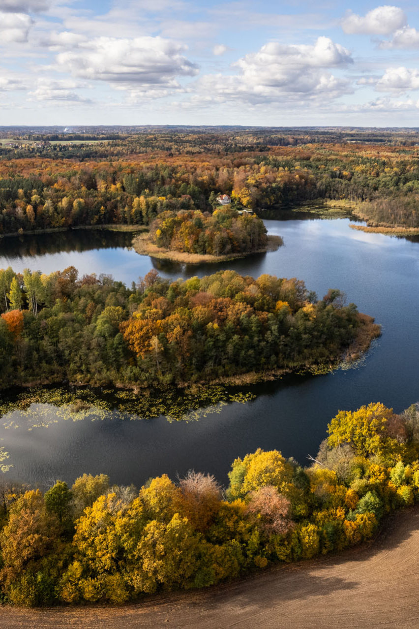 Krótkie jesienne dni, ale przede wszystkim chęć zobaczenia jak największej ilości pięknych miejsc sprawiły, że musiałem do planu podróży dodać jeden dzień. Fizycznie byłoby mi ciężko dojechać z Warszawy do trójstyku koło Wiżajn i tego samego dnia zobaczyć jeszcze coś ciekawego. Od dawna miałem zaproszenie do Tartaczyska, gdzie Ania i Paweł prowadzą agroturystykę Zakole Czarnej Hańczy. Postanowiłem spędzić noc na skraju Puszczy Augustowskiej, a wcześniej powłóczyć się trochę po nieznanych mi wcześniej zakątkach Suwalszczyzny. Pierwszym miejscem, do którego pojechałem, był dworek Czesława Miłosza w Krasnogrudzie. Jest to wieś położna przy granicy Polski i Litwy. Sąsiaduje z jeziorem Gaładuś oraz jeziorem Hołny, nad brzegiem którego stoi zabytkowy dwór. W przeszłości zamieszkiwała w nim rodzina Kunatów. Weronika Miłoszowa z Kunatów była matką Czesława Miłosza. Ten wybitny polski poeta i prozaik, laureat Nagrody Nobla w dziedzinie literatury (1980 r.) często bywał w tym miejscu. Po rewitalizacji dworu w 2011 r., w setną rocznicę urodzin pisarza, otwarto tu Międzynarodowe Centrum Dialogu. Jego głównym założeniem jest kultywowanie wielokulturowego dziedzictwa Rzeczypospolitej Obojga Narodów.