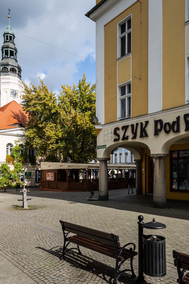 Zielona Góra zauroczyła mnie w 3 minuty. Drogowskazy doprowadziły mnie bezbłędnie do samego centrum. Tuż obok ratusza uciąłem sobie przemiłą pogawędkę z Niemcami podróżującymi na rowerach, podzielali mój zachwyt miastem. Był on wywołany głównie ciekawą architekturą i słodkim klimatem. Dlaczego słodkim? Dawno nie widziałem takiego zagęszczenia cukierni, kawiarni i piekarni z łakociami. Pierwszy raz po wielu latach skusiłem się na pączka z bitą śmietaną. Chodziłem po mieście i co rusz chwytałem za aparat. Uliczki w centrum są bardzo fotogeniczne. Co konkretnie warto zobaczyć? Ratusza na środku przestronnego rynku nie sposób nie zauważyć. Wychodząc z rynku w kierunku filharmonii, traficie na poewangelicki kościół z XVIII w. Obecnie funkcjonuje w nim rzymskokatolicka parafia pw. Matki Boskiej Częstochowskiej. Na jego tyłach znajdują się pozostałości murów obronnych. Warto przejść ul. Mickiewicza do Konkatedry pw. św. Jadwigi Śląskiej. Stamtąd ul. Kopernika polecam przespacerować się na Plac Pocztowy, po drodze obejrzeć Wieżę Łaziebną (inaczej zwaną Głodową). Dalej ul. Jedności dotrzeć do Placu Słowiańskiego, a następnie ul. Sobieskiego wrócić na rynek. Ja skusiłem się na koniec na zapiekankę. Nie żałowałem tej decyzji, a przy okazji miałem chwilę, żeby popatrzeć na sobotnią codzienność tego urokliwego miasta.