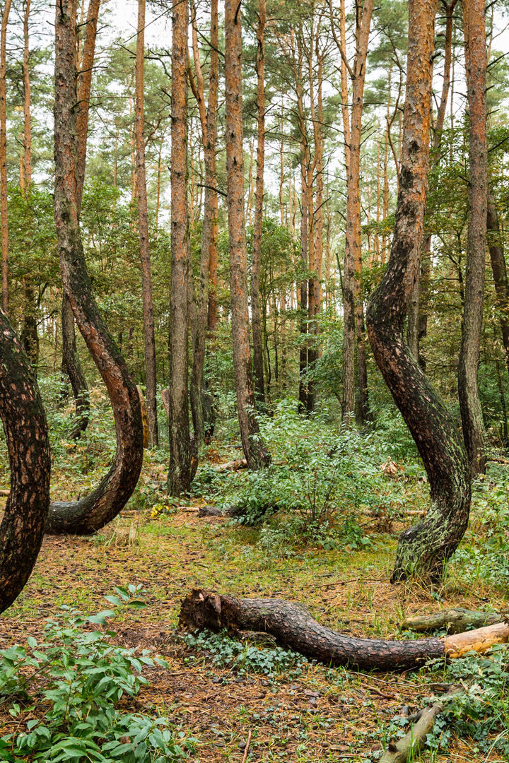 Z Chojny drogą nr 31 udałem się do Gryfina. O odwiedzeniu leżącego nieopodal Krzywego Lasu marzyłem od dawna. Niestety było to dla mnie jedno z największych rozczarowań od dłużego czasu. Po pierwsze nie jest to krzywy las, a jedynie kilkanaście krzywych drzew. Po drugie na zdjęciach zamieszczanych w internecie wygląda on bajkowo, a tak naprawdę znajduje się tuż obok zakładów przemysłowych, parkuje się pod ogromną rurą, a między zaroślami przebijają fragmenty betonowych bloków. Z przerażeniem przypomniałem sobie przeczytaną w sieci historię Azjatek, które przyjechały do Polski ze względu na to miejsce…